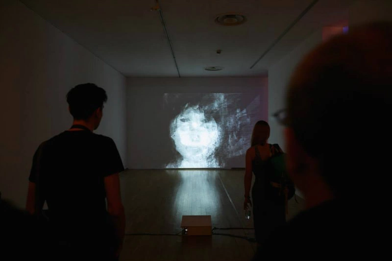 Și ultima lucrare, o proiecție video cu fotografiile unui chip de femeie, pozată la vârste diferite. Dilmana Yordanova / Studiu de sine.