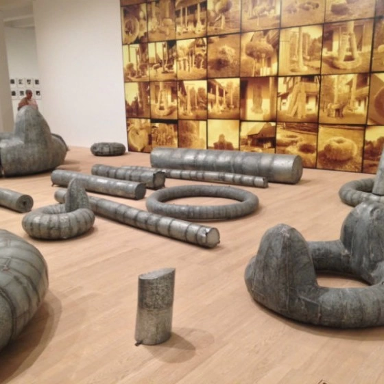 Instalația Reverse Collection concepută de artistul libanez Tarek Atoui a avut, la rândul ei, ca materie primă, sunetul. Atoui, inspirat în egală măsură de muzica arabă și de compozitori occidentali, a stors muzică, vibrație și ceea ce el numește „auralitate” din tot soiul de obiecte cu potențial mai mic sau mai mare de instrument. Proiectul lui a pornit în urma unei vizite la un muzeu etnologic din Germania, unde a descoperit instrumente muzicale antice, multe dintre ele dispărute. După ce a reușit să spargă zidul birocratic și să aducă muzicieni care, după sute de ani, le-au readus la viață, Atoui a colaborat cu meșteșugari alături de care a inventat instrumente. De la cornuri de sulfat, la cești de porțelan, de la instalații cu iz SF, la obiecte casnice, toate sunt invocate sonor de Atoui într-o improvizație continuă.
