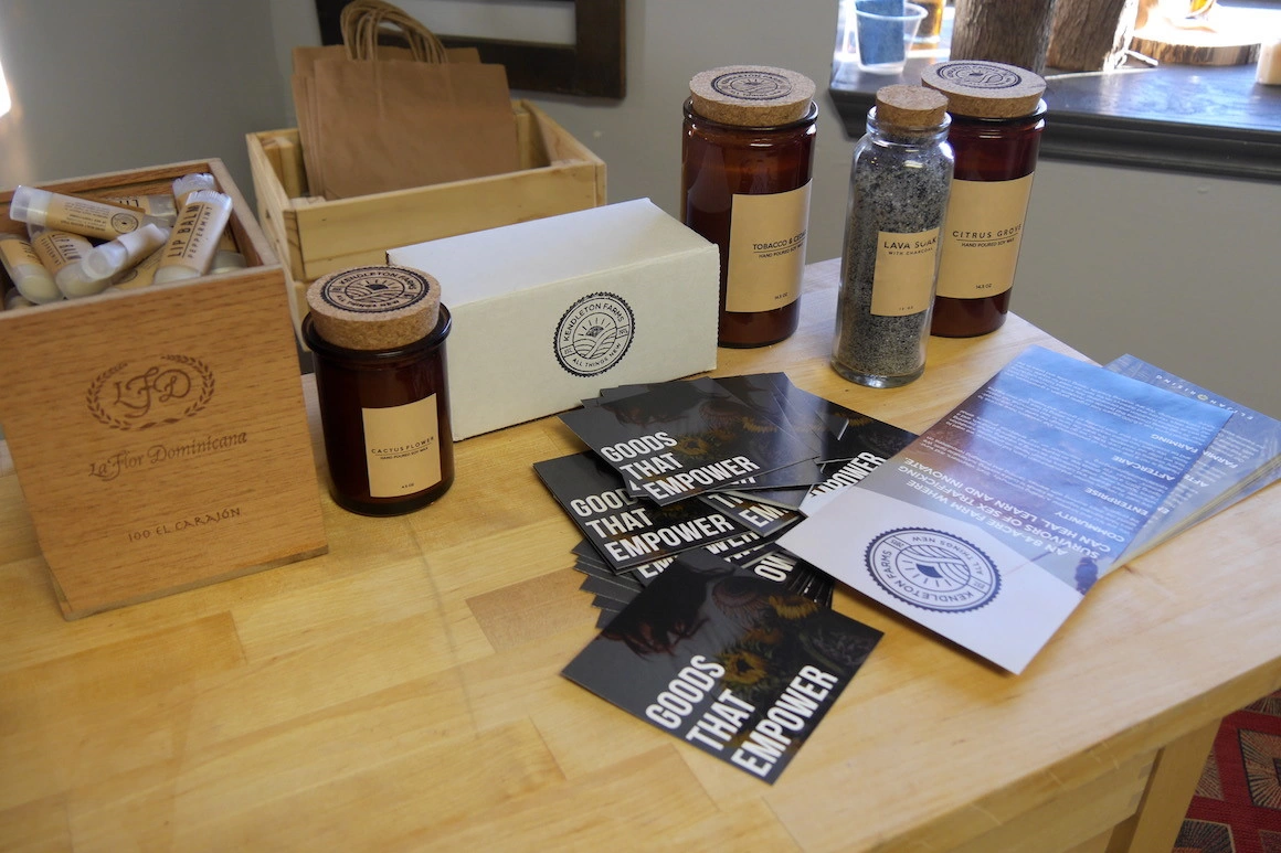După încheierea turului, ne întoarcem la sediul organizației. Clădirea e împărțită în câteva încăperi. Două găzduiesc singurul muzeu al sclaviei moderne din Texas, cu obiecte aduse de fetele pe care le-au salvat ong-iștii. Alte două – produsele pe care le-au confecționat supraviețuitoarele în Kendelton Farms, o fostă școală creștină abandonată, pe care cei de la Elijah au cumpărat-o în 2015 și unde au amenajat cinci case, un hambar uriaș și 35 de hectare de teren arabil. În momentul de față, acolo locuiesc 12 femei și cinci copii.