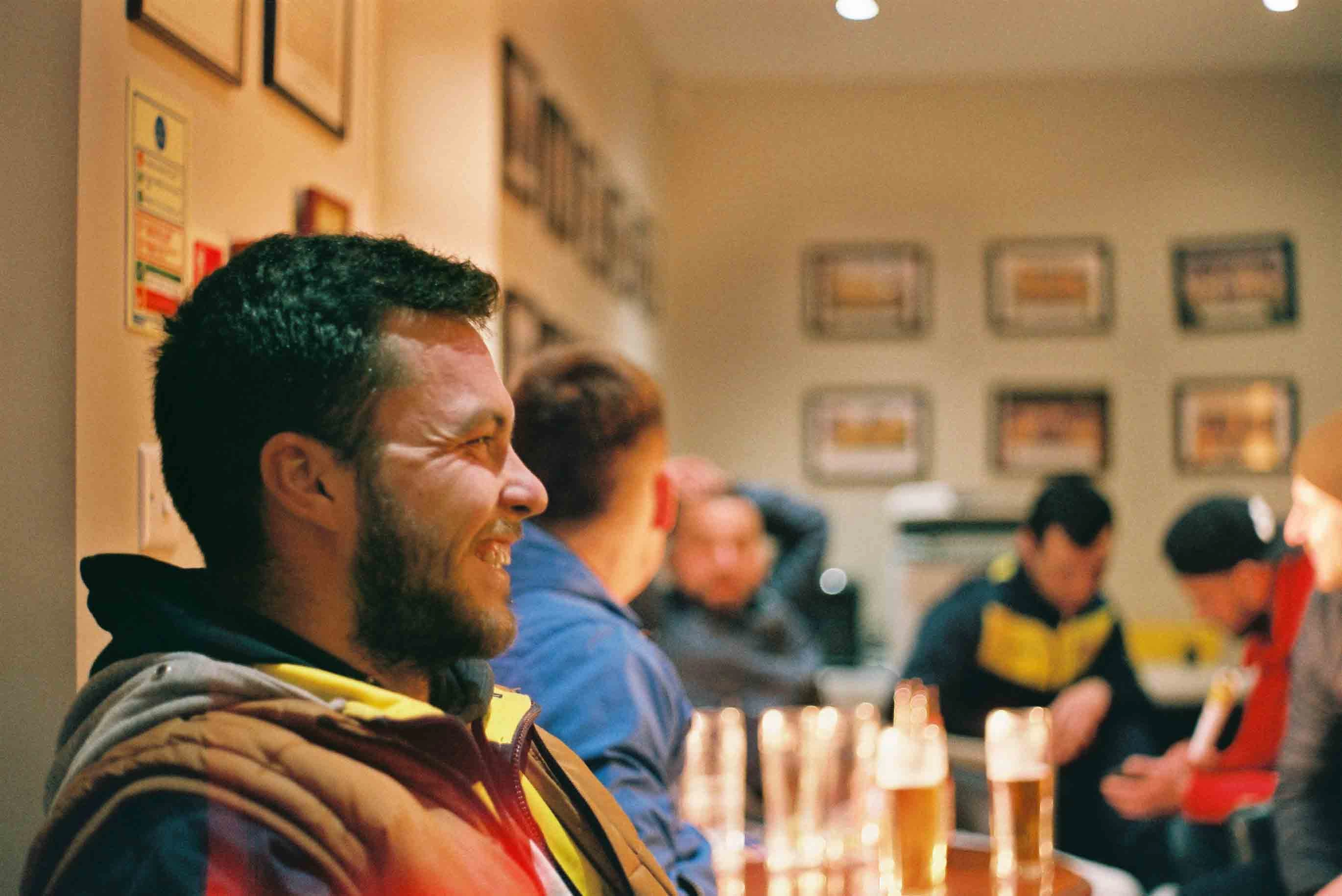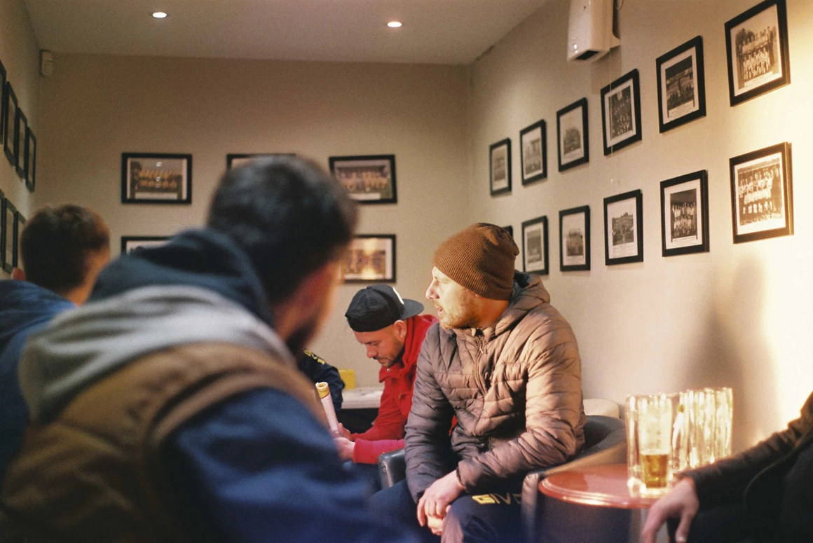 Povestesc cu Cristi Iacob, fundaș stânga. La 25 de ani, Cristi arată foarte tânăr, dar dă impresia că e și foarte matur. Are simțul umorului, e politicos și atent. A jucat la echipa de juniori și apoi cea de seniori, la FC Brașov. Îmi povestește că i-a fost greu în România să se întrețină din salariul de fotbalist. La 18 ani, s-a mutat și a muncit orice a putut în Londra. N-a fost ușor, pentru că fotbaliștii nu sunt obișnuiți cu munca, glumește el.