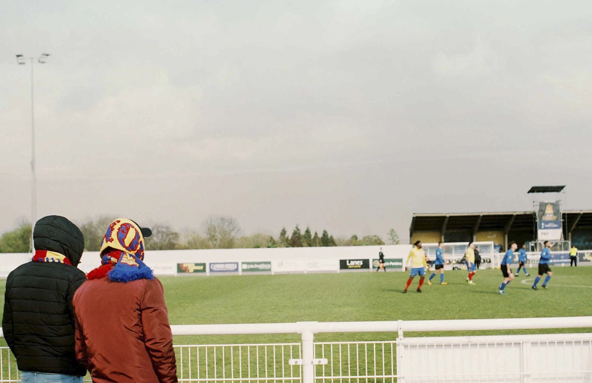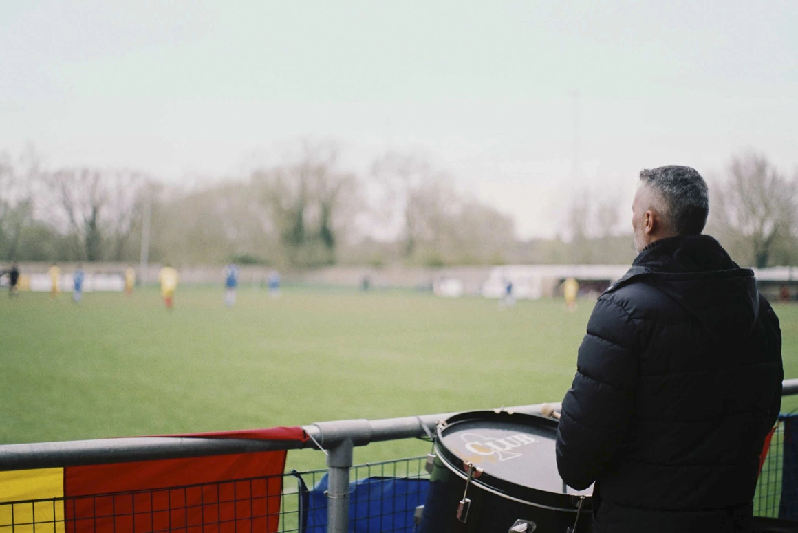 E început de aprilie, sâmbătă și vreme nehotărâtă. De vreo două ore, stau cu nasul în harta din telefon, pe drum spre meciul din deplasare al echipei FC România. Copii în cârcă, familii tinere, grupuri de bărbați de toate vârstele se apropie de terenul de fotbal din orășelul idilic Hertford, undeva la vreo 30 de km de Londra. La intrare, îmi dau seama că n-am bani cash de bilet, dar un englez binevoitor, suporter FC Hertford, îmi plătește intrarea și promit că data viitoare fac eu cinste.