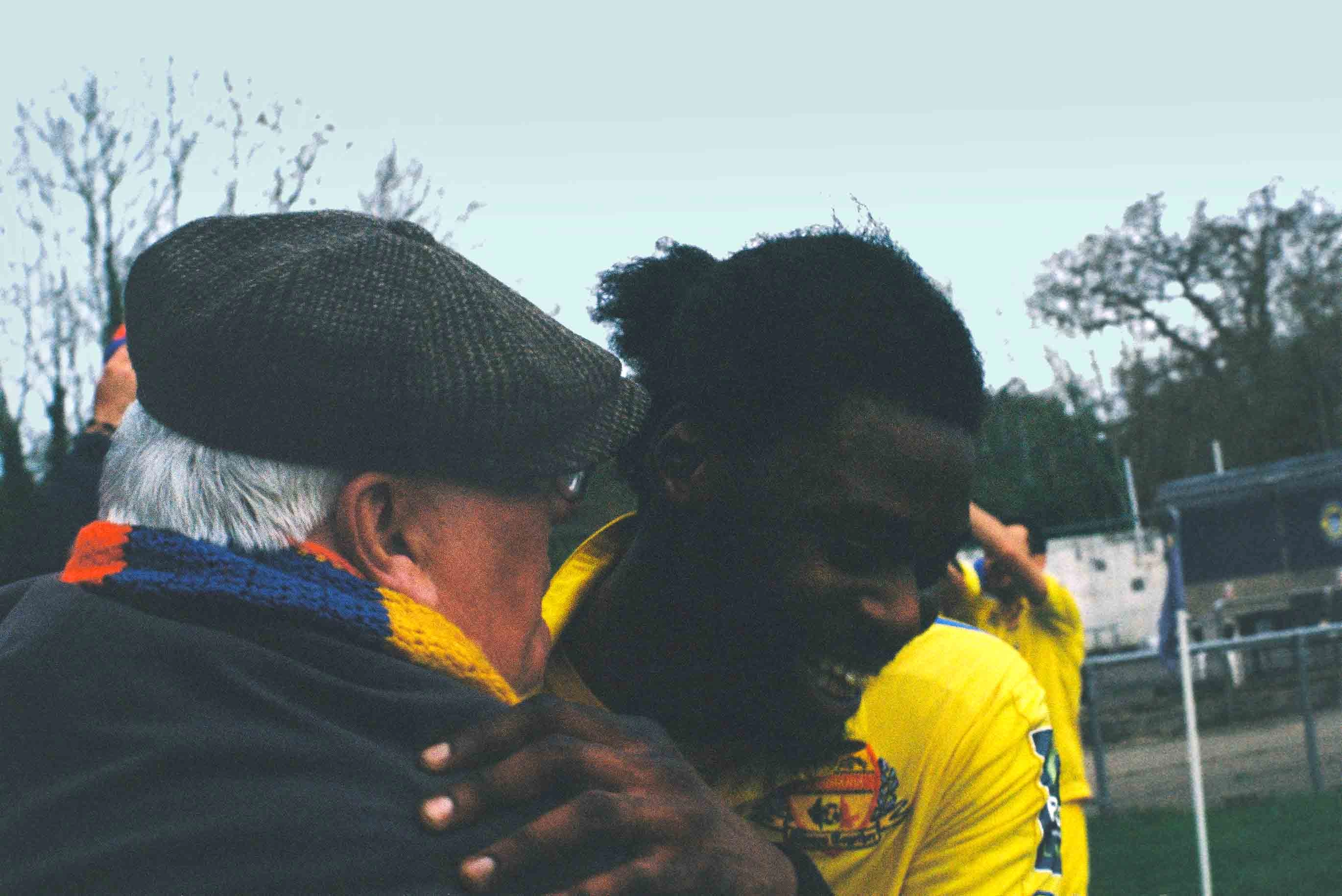 Conversația noastră se întrerupe la fluierul de final de meci. Jucătorii FC România se apropie victorios de suporteri. În îmbrățișarea generală, John Adams îl pupă pe britanicul de culoare Roddy Lemba și-i spune că-l iubește când dă goluri.