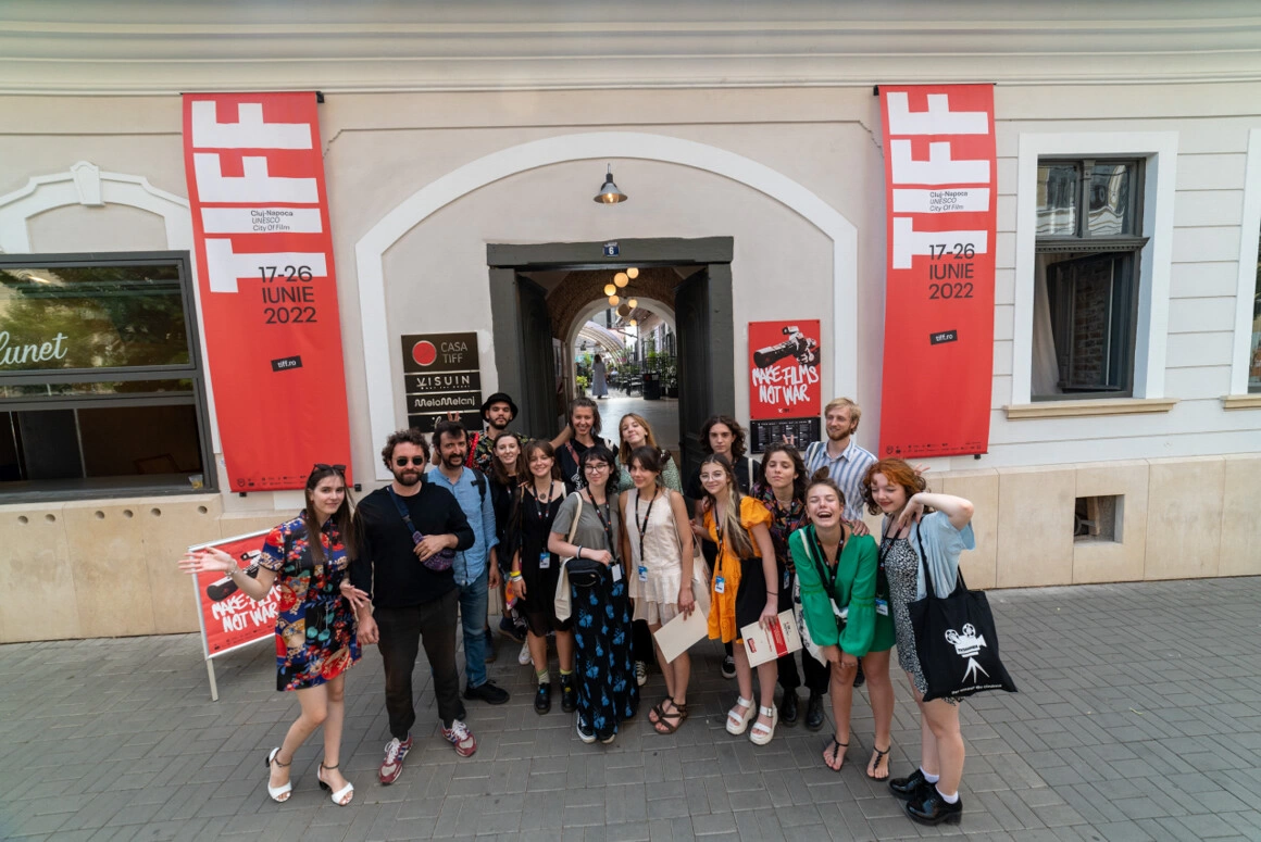Din cauza asta, Oana și Marius mă lasă în față la Casa TIFF, centrul de comandă al festivalului și terasă deschisă tot timpul anului pe strada Universității, la doi pași de Piața Unirii. La Casă se adună majoritatea invitaților între evenimente, să se cunoască, să bea ceva, să mai stea un pic. Invitații sunt fie critici de film, producători, jurnaliști, actori sau cinefili, care adesea se văd doar la festivaluri. Ediția de anul ăsta a fost pentru mulți ocazia să se reîntâlnească după doi ani de izolare.