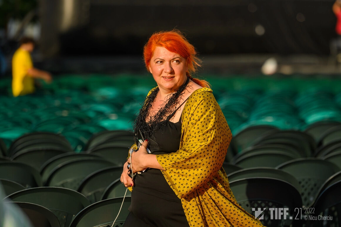 Eu am prins-o înainte de începutul petrecerii de închidere. L-am lăsat pe Hordilă la gala care începuse deja și am plecat să văd ce înseamnă orele de muncă dinaintea unei petreceri TIFF. „Closing-ul”, cum îi spune ea, se ține la o locație cu vedere panoramică a Clujului, în cartierul Borhanci. Îmi e greu să țin pasul cu Ana, străbate toată terasa în mai puțin de un minut.