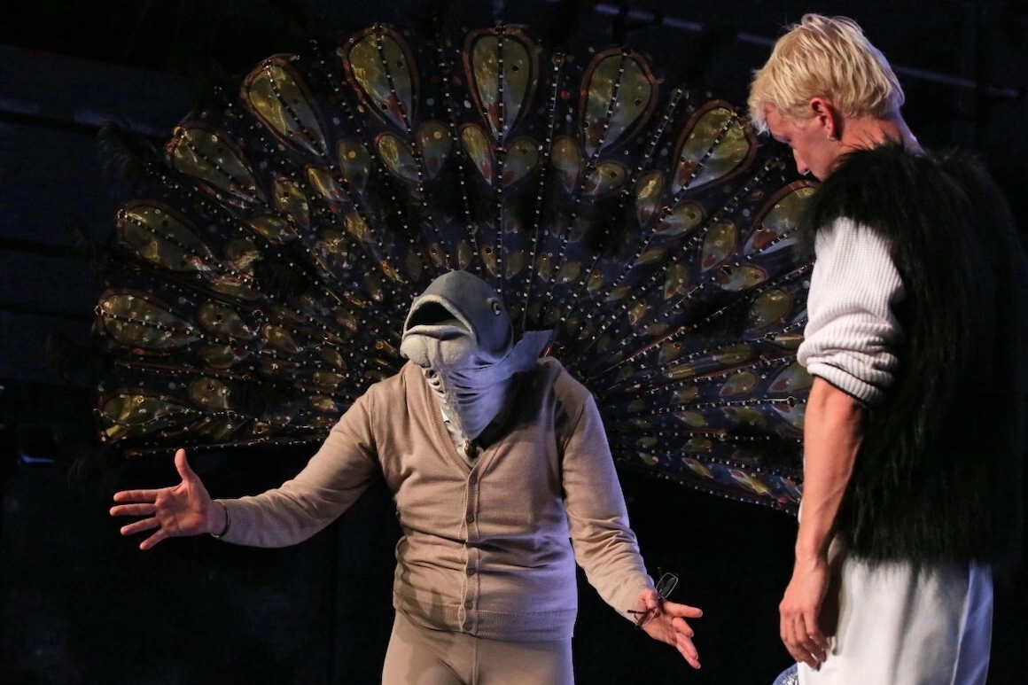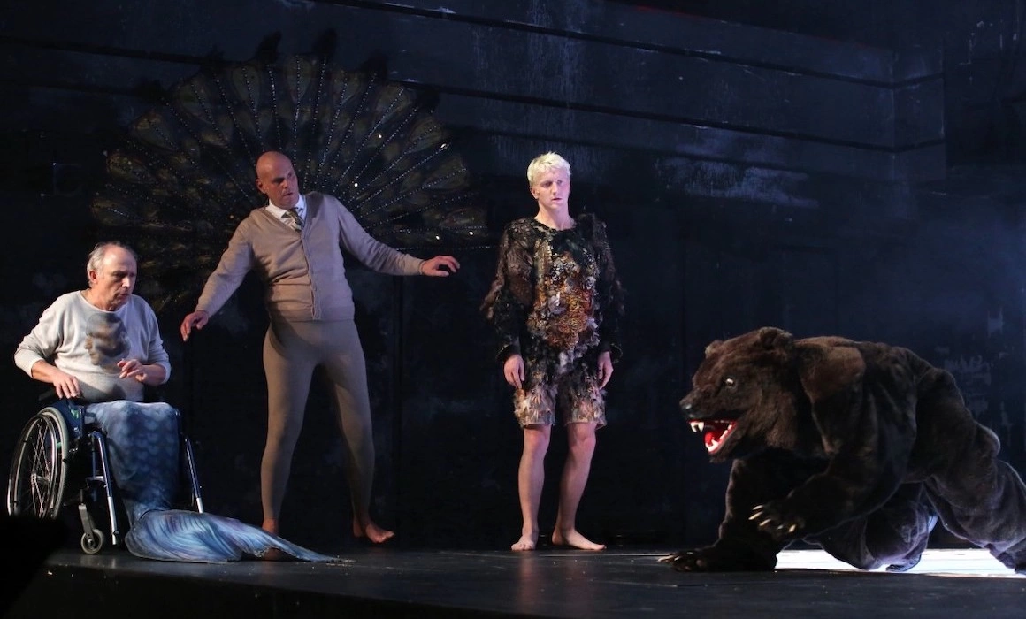 Povestea economică / socială / politică ar putea părea prea tehnică la prima vedere, doar că Gianina Cărbunariu folosește un arsenal de narațiuni, cu personaje vii și colorate – un păun, mai mulți pești, un urs – și un umor acid, toate bine susținute de actorii germani, preciși și spectaculoși (minunat Elias Krischke, contratenor, într-un moment muzical autoironic, și Sebastian Röhrle în rolul Domnului Păun). La Cărbunariu este mereu interesant modul în care narativ se conjugă mai multe teme și perspective asupra unor subiecte într-o arhitectură dramaturgică solidă, care reflectă panoramic o stare de fapt la nivel politic, social, economic sau al mentalului colectiv. Acest construct dramaturgic stratificat este îmbrăcat într-o haină fantastică – basm, show SF, fabulă, poveste populară sau legendă urbană etc., care funcționează ca un contrapunct. Este o modalitate a artistei de a-și dovedi latura creativă luxuriantă în timp ce articulează demonstrații politice inconfortabile. De exemplu, în Waste!, alături de păunul crescut „eco” la fabrica de ciment (caz real) și de peștii uciși de „nepoluare” (și ei la fel), apare un urs care preia revolta împotriva poluatorilor și a corupției locale și o transformă într-un discurs extremist. Radicalizarea ursului, care exploatează nemulțumiri sociale și le dă o turnură fascistă, este neașteptată și amintește de surpriza avută de electoratul din România la apariția AUR în alegerile din 2019. Dar aici nu este vorba strict de România, ci de un fenomen global: cinismul capitalist, în care exploatarea pentru profit provoacă dezastre umane, sociale și ecologice, generează apariția unor mișcări politice și a unor lideri radicali care se erijează în vocea poporului.