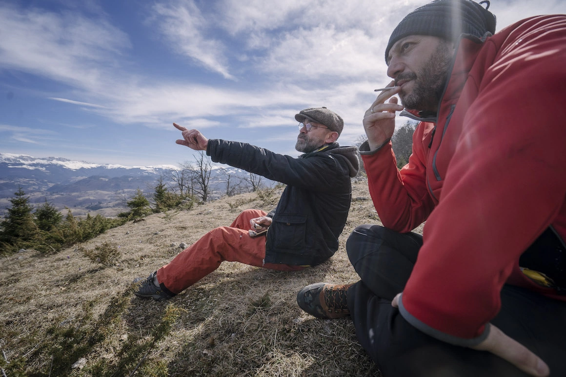 „Ultima oară când am făcut toată creasta, am avut șapte de litri de apă cu mine și nu a mai rămas nimic. Apa e cea mai importantă când te bagi la așa ceva”, zice Matei trăgând dintr-o țigară. „E splendidă Piatra Craiului, dar nu e chiar așa ușor, că tre să urci, să cobori, să urci și tot așa. Cam ai nevoie de niște antrenament. Sunt porțiuni cu lanțuri, unde îți cam țâțâie curul.”