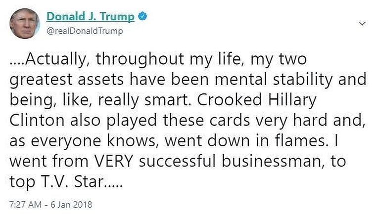 Răspunsul președintelui a fost previzibil: a amenințat că-l va da în judecată pe autor și a încercat să împiedice publicarea cărții, despre care a zis că e o „operă de ficțiune”. După care a ieșit cu un tweet în care se declara „un geniu stabil”.