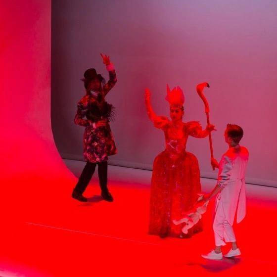 Spectacolul, scris de Yann Verburgh, cu câțiva sâmburi de la Lewis Caroll și regizat de Eugen Jebeleanu se bucură de un text excelent, adresat adolescenților, dar care poate să pună orice om mare pe gânduri. Costumele sunt niște bijuterii de-a dreptul, iar LED-urile care-și schimbă culorile pe fiecare scenă te înfig cu totul în zilele noastre.