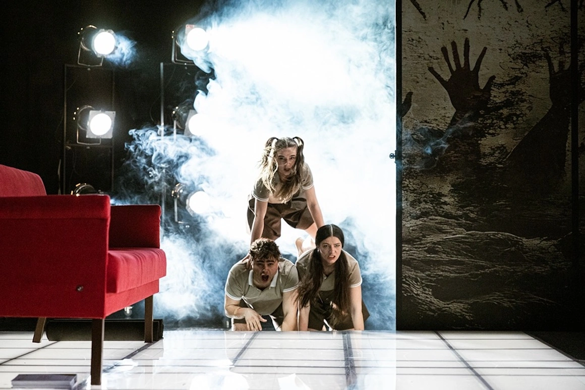 Canin, regia Botond Nagy, Teatrul Național Târgu-Mureș – Compania „Liviu Rebreanu”. Nagy face un spectacol despre abuz în familie, o distopie domestică, cu un tată autoritar (Barna Bokor) care imaginează un univers concentraționar în care își crește copiii, cu sprijinul soției (Elena Purea) — de fapt, sunt diferite trepte de abuz, soția este în același timp victimă și complice la agresiune. Creat după filmul lui Yorgos Lanthimos și Efthimis Filippou, Kynodontas (filmul a apărut pe fundalul mai multor cazuri din Europa de Vest în care adulți, de multe ori tații, au sechestrat și abuzat copii ani de zile) este configurat într-un spațiu minimalist, o casă austeră, decorată în stil japonez, minimalistă, ordonată, cu pereți transparenți care asigură controlul, fără intimitate, pe unul dintre pereți tronează pictura American Gothic a lui Grant Wood. Spectacolul are un ritm lent, care se menține cu precizia unui ceasornic — copii militarizați, decuplați de lumea exterioară și deposedați de personalitate, soția decorativă, serviciile sexuale asigurate de o subalternă robotizată a tatălui. Spre deosebire de film, care apasă pedala thriller / absurd / deviant, spectacolul păstrează latura absurdă și violența psihologică, dar îngroașă tușele de fabulă — mediul domestic este canin, cu copii care latră, imaginarea unui dușman care controlează exteriorul (frica este cel mai bun gardian) duce la identificarea acestuia cu pisicile — și o îndreaptă spre traumele familiale generate de părinți obsedați de control.