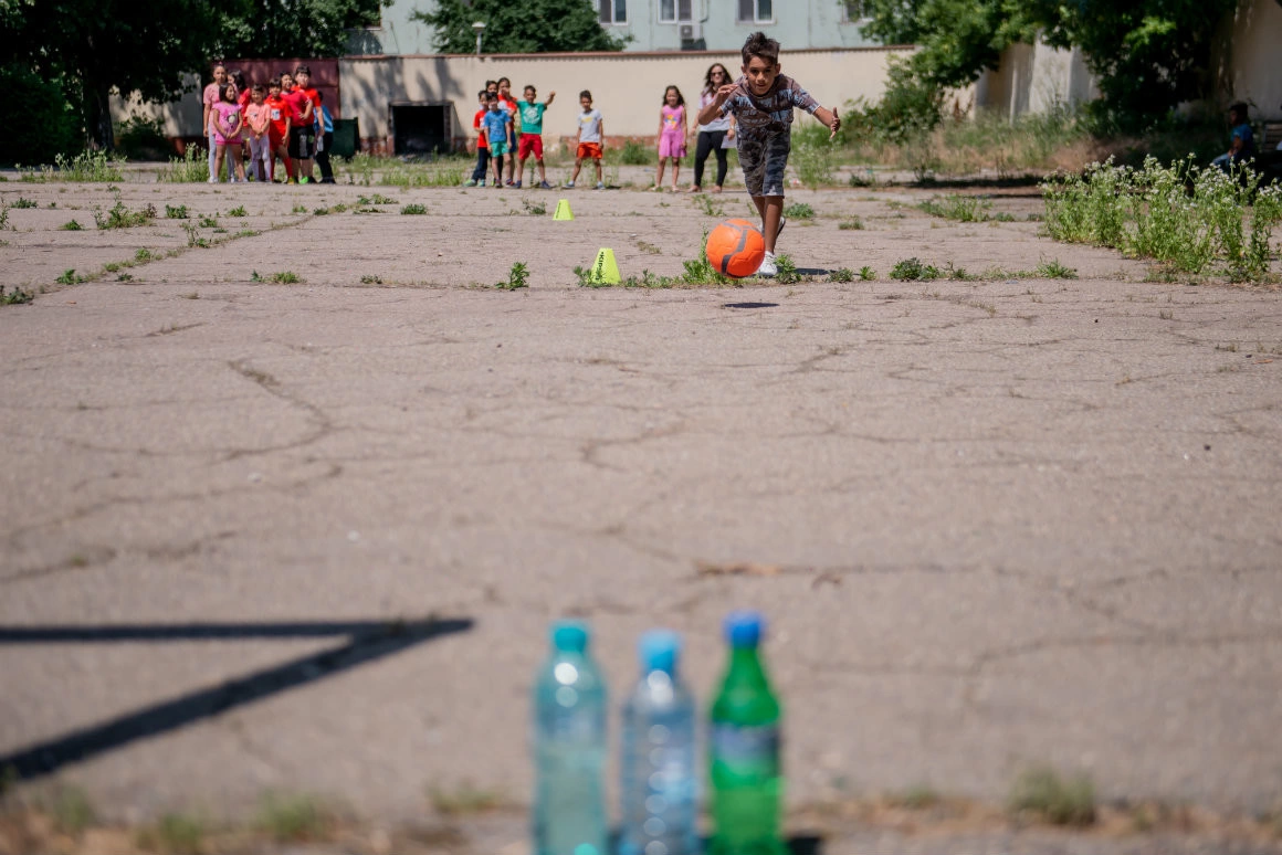 Dar când pe unul dintre copii îl ia plânsul, tot Ina e cea care-l ia în brațe și-i dă șervețele să-și șteargă nasul. Și ea și Laur, antrenorul grupei mari, încearcă să fie atenți la fiecare copil în parte. „Alo! Hai, mai cu zâmbetu’ pe buze”, strigă de pe margine Laurențiu la portarul uneia dintre echipe. Puștiului tocmai i-a murit mama, îmi spune după antrenament. O altă puștoaică a rămas de curând fără ambii părinți. Adeseori, nici n-ai cum să le reproșezi că nu vin la antrenamente. Și, pentru că vin dintr-o comunitate dezavantajată, cel mai greu e să-i unești și să-i faci să înțeleagă că în echipă nu pot funcționa unul fără altul. Copiii ăștia au învățat să funcționeze după „regula străzii”, zice Laur.
