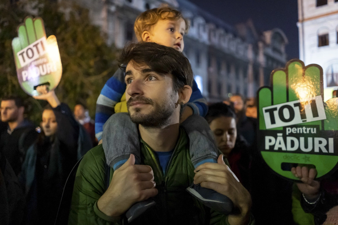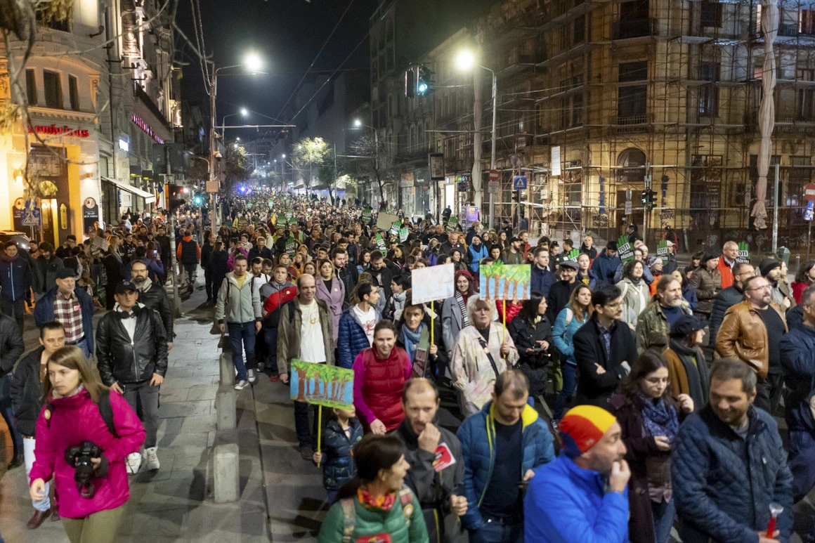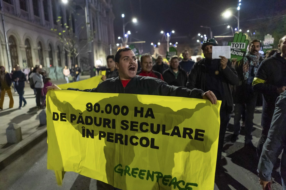 Ăsta e contextul în care între 4.000 și 5.000 de oameni au plecat duminică seara, pe 3 noiembrie, în marș pe străzile capitalei. Organizat de activiștii de mediu de la Greenpeace România și Agent Green, Marșul pentru Păduri a adunat laolaltă tineri și seniori, copii, căței și toată pleiada de tipologii pe care începeam s-o vedem în stradă pe vremea protestelor pentru Roșia Montană.