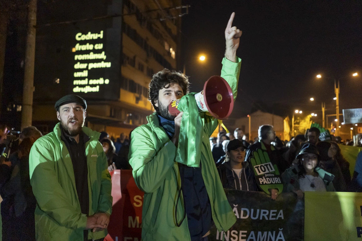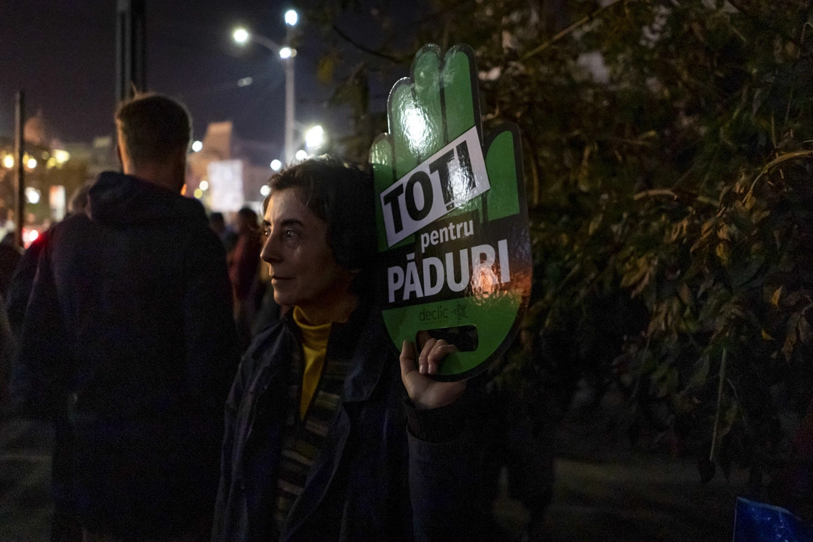 Așa a arătat protestul de duminică, desfășurat concomitent și în alte orașe din țară. Marșul s-a oprit din București, încheiat în fața Ministerului Apelor și Pădurilor, a explodat într-o ploaie de scandări și bătăi de tobe, proiecții cu slogane pentru apărarea pădurilor, desfășurări impresionante de pancarte, care, printre altele, aminteau că românul se mândrea că-i frate cu codrul. Sau că-n Bucovina acum cântă drujba, nu cucul din cântec.