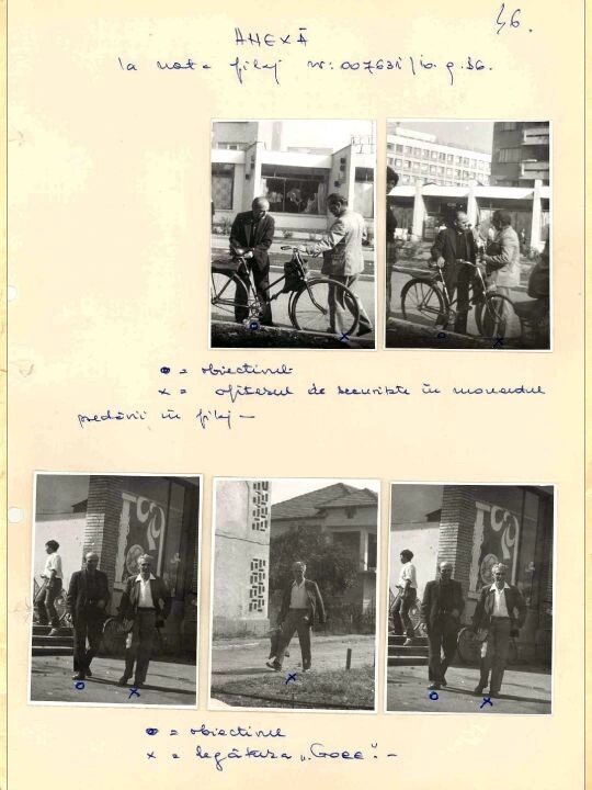 Printre rapoarte și turnătorii, arhivele fostei Securități conțin numeroase fotografii din operațiunile de filaj. Imaginile menite să susțină vinovății, din perspectiva regimului comunist, dau amploarea unei epoci a iscodirii. Ele sunt încă o probă că statul se considera proprietar al vieților oamenilor.