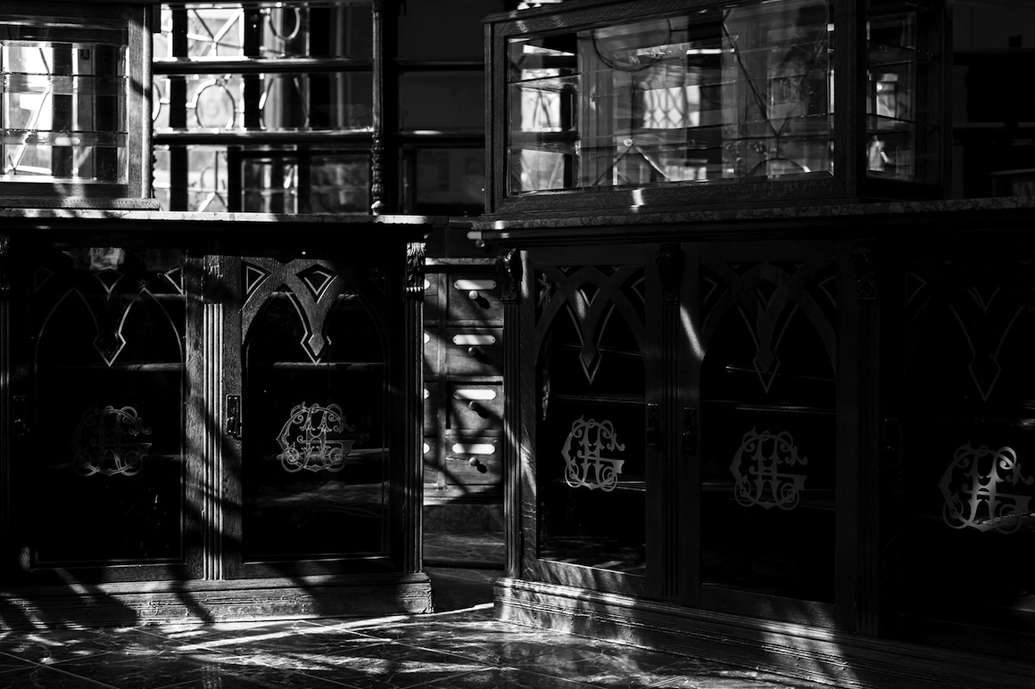 La subsol e un dispozitiv imens în care se amestecau medicamentele, distilatoare, vase mari din ceramică, eprubete, cutii. În depozitul de la mezanin e venena, un dulap ținut sub cheie în care se țineau substanțele foarte toxice.