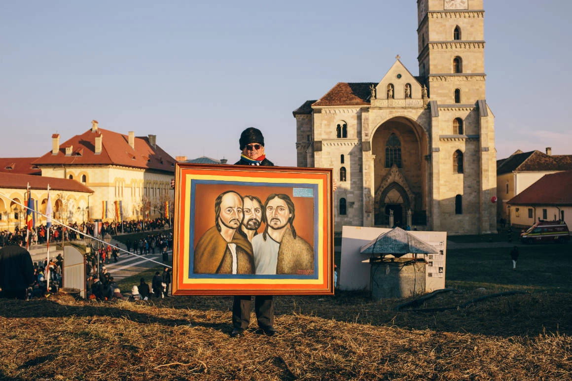 Aproximativ 200.000 de oameni au venit din toată țara la Alba Iulia, ca să participe la sărbătoarea Centenarului. Dintre ei, câteva mii au participat la evenimente îmbrăcați în costum popular, iar câteva sute au venit pe jos, pe cal, cu caruța trasă de boi sau de cai. Au parcurs sute de kilometri din Maramureș, Oaș, Covasna, Bucovina, Timiș, pentru a reconstitui drumul făcut de strămoșii lor acum 100 de ani. Un convoi de zece căruțe a venit din Sighetu Marmației. Un altul a venit cu căruța trasă de doi boi din Săcel (Maramureș), iar un tânăr din Covasna a venit pe cal până în fața statuii lui Mihai Viteazul, unde calul a făcut trei plecăciuni. Un basarabean de 77 de ani a venit pe jos din Bălți (republica Moldova): 520 de kilometri pe care i-a parcurs în 30 de zile. Am condensat atmosfera de la Alba Iulia într-o serie de portrete.