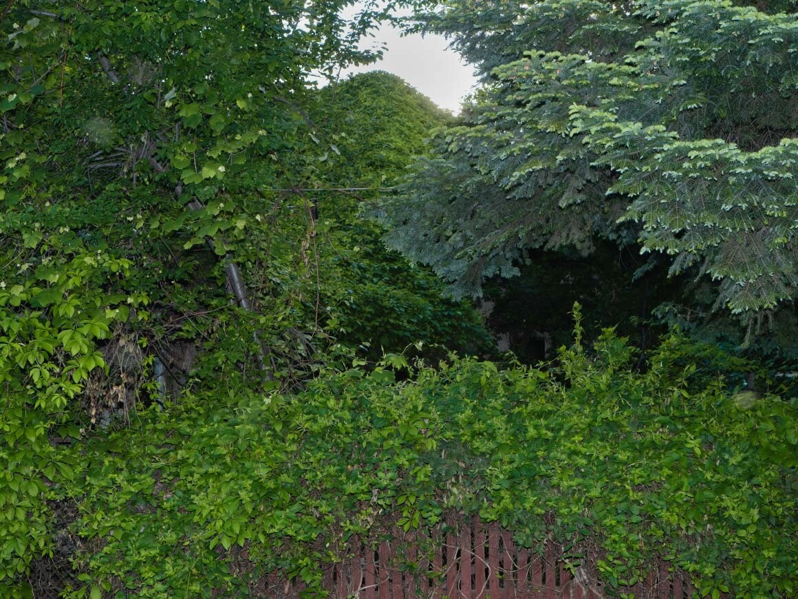 Cu ochii după frunze, am mai fotografiat o tufă urcătoare de Luleaua turcului (Campsis Radicans) pe la două dimineața în zona Arcului de Triumf, unde am avut noroc să văd la câțiva metri de mine într-un copac şi un ciuf pitic. Pe bulevardul Dacia, chiar în centrul Bucureștiului, aproape de o ambasadă, am tras cu blitz într-o curte sălbăticită ca-n Grey Gardens. Într-o altă noapte pe la Unirii, în zona cu case de pe la 1800, cineva a chemat poliția pentru că aparent „făceam parte dintr-o grupare infracțională care filează proprietățile oamenilor”. De fapt, încercam să găsesc unghiul și lumina potrivite pentru niște grădini năpădite de verdeață. Pe la 5 dimineața am dat o tură cu bicicleta prin răcoare să văd un arbore de Sequoia (Sequoiadendron) aclimatizat în Parcul Carol.Tot aclimatizat, am fotografiat un bananier (Musa × paradisiaca) înalt de peste 6 metri, într-o curte din zona Polonă.
