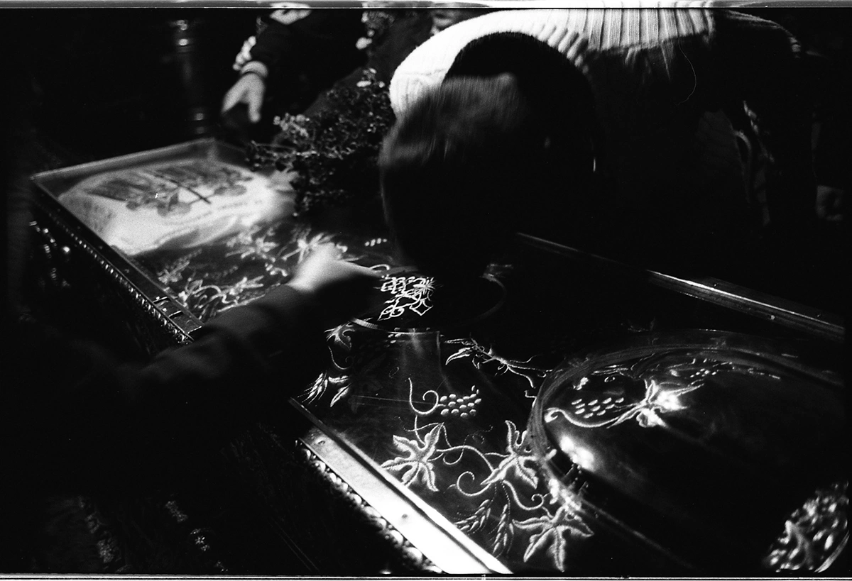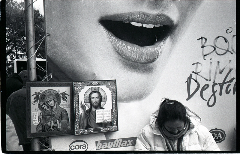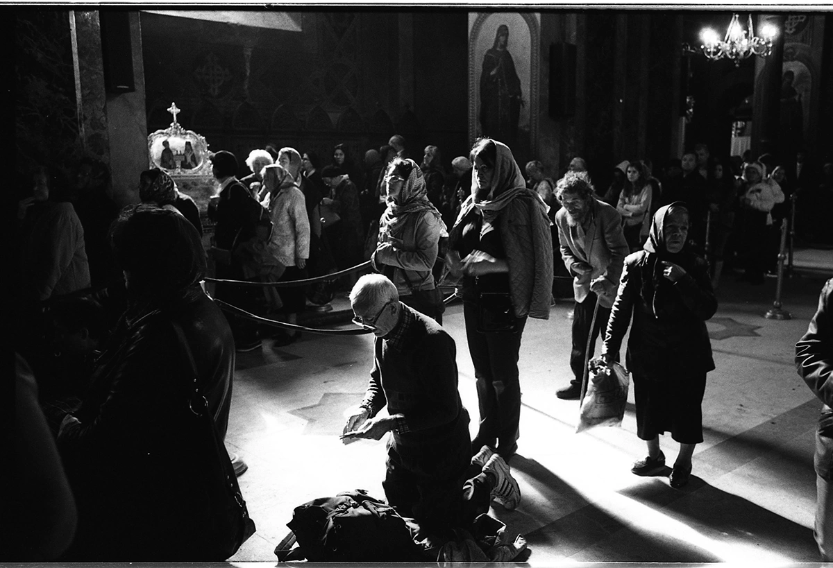 Cred că în primul an când am fost la Sf. Dumitru nu am făcut mai mult de 10 cadre. Am fotografiat vânzătorii din afara zonei pelerinajului, fiindcă mi-a fost rușine să intervin cu aparatul de fotografiat într-o mulțime de oameni „dezbrăcați”, vulnerabili. Dar din clipa în care care am început să fotografiez pe dealul Mitropoliei, am resimțit o incredibilă nevoie de imagine a celor de acolo. Plecasem cu teamă că aș putea avea dificultăți în abordarea pelerinilor, dar aproape imediat am fost împărțit între cei care se aflau la coadă la moaște: cine dorea o fotografie de grup, cine un portret, cine un detaliu al unei icoane. Toți doreau să fie fotografiați. Marea lor majoritate nu au întrebat dacă sunt de la vreun ziar/publicație, dacă imaginile vor apărea undeva, dacă „or să fie dați la TV”, ci își doreau pur și simplu să fie fotografiați atunci, acolo. Imaginea lor va rezista mai mult decât ei sau decât mine, va rămâne dovada prezenței lor în acel context de credință.