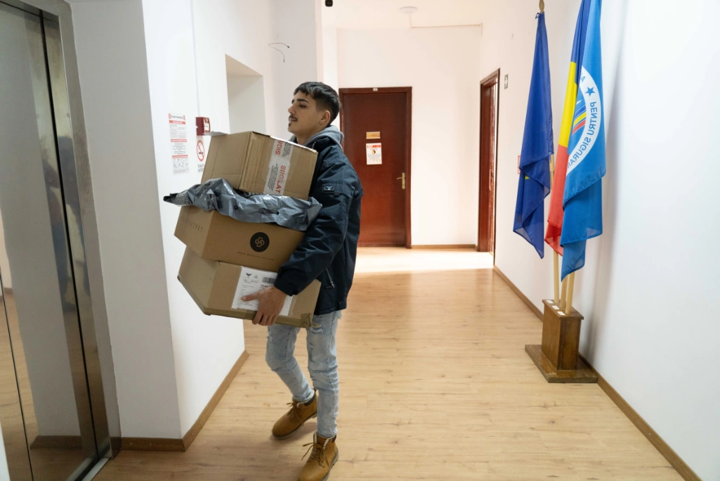Un ultim bloc pe care îl străbatem în toate direcțiile. Ușa se deschide și, pe lângă colet, Valentina din Ucraina îi dă lui Gabi și un cadou. „Mulțumesc și sărbători fericite să ai!”, îi urează din pragul ușii. E un bloc cu peripeții, îmi povestește curierul. Odată, a găsit o geantă și a petrecut apoi trei ore la telefon cu Poliția ca să dea de urma proprietarei. În cele din urmă, s-a dovedit a fi o locatară a respectivului bloc. „Mi s-a spus că erau aproape trei mii de lei în [geantă], dar nu m-aș fi atins de ei. Am rămas prieten cu doamna și acum ne salutăm și povestim când ne întâlnim. Pentru mine asta e mult mai important decât banii.”