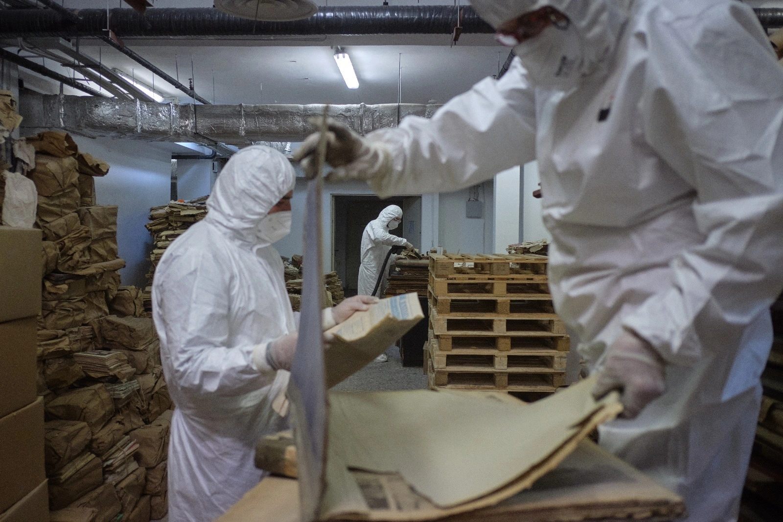 Cărțile vechi din depozitele Bibliotecii Naționale nu pot fi întotdeauna expuse, consultate, sau restaurate imediat. Multe dintre ele au fost „triate, desprăfuite și trimise la Institutul de Fizică Atomică de la Măgurele pentru a fi decontaminate – cu cobalt –, pentru că nu puteau fi prelucrate în stadiul de contaminare”. Liliana Hudrea, membră în Biroul Executiv al Sindicatului Bibliotecii Naționale, spune că asemenea situații nu sunt excepționale, ci frecvente.