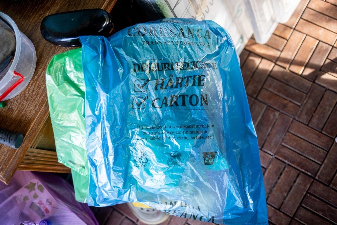 „Arunc majoritatea deșeurilor separat - plastic, hârtie, metal și sticlă. Abia recent [am început], pentru că de vreo lună a început primăria să ne trimită 4 saci în loc de unul singur pentru toate reciclabilele. Și resturile vegetale le pun în saci si sunt luate de aceeași firmă de colectare”, spune un vecin al femeii.