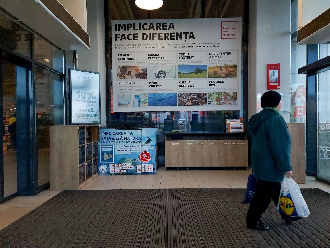 3 Profi-uri care au „banalele coșuri” la intrarea în magazin, în care poți recicla hârtie, baterii, plastice. Problema: sunt foarte mici, nu poți veni cu chestii colectate pe o perioadă mai mare acasă, ci mai degrabă ca să arunci bonul de cumpărături sau ce mai ai prin mașină.