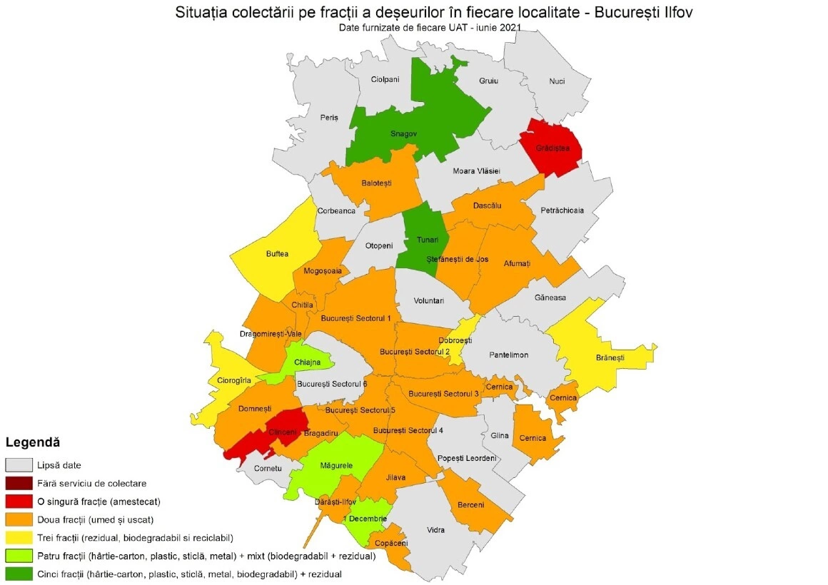 Expertul Raul Pop a realizat o hartă a colectării deșeurilor în fiecare localitate. Datele pentru comuna Corbeanca, unde locuiește Tea, lipsesc.