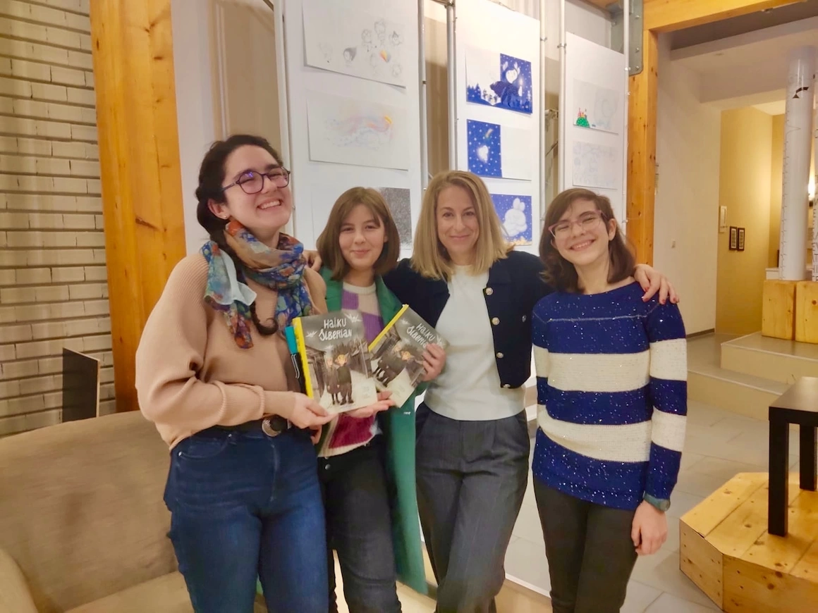 Dialogul celor două autoare cu publicul a fost extrem de viu – Jurga și Lina au răspuns cu multă sinceritate și căldură la toate întrebările pe care le-au primit, de la cele naiv-simpatice ale copiilor („Cum reușiți să desenați întotdeauna un personaj la fel? Mie nu-mi iese…”) până la cele serioase ale adulților, privind receptarea cărții în Rusia, în contextul războiului actual. Am aflat astfel că au fost nevoite să facă unele modificări pentru ediția în limba rusă, dar volumul a fost un succes. Din 2017, de la apariția Haiku-ului, Jurga și Lina s-au plimbat prin toată lumea, însoțind povestea în drumul ei către public – la final de noiembrie urmează să ajungă la târgul de carte de la Guadalajara, Mexic. Nu au mai colaborat la un alt proiect, fiind fiecare prinsă cu multe alte proiecte personale. Iar declarația ilustratoarei că s-a apucat să învețe desenul abia după vârsta de 25 de ani, ajungând să ilustreze prima carte spre 40 de ani ne-a dat tuturor speranță că niciodată nu e prea târziu.