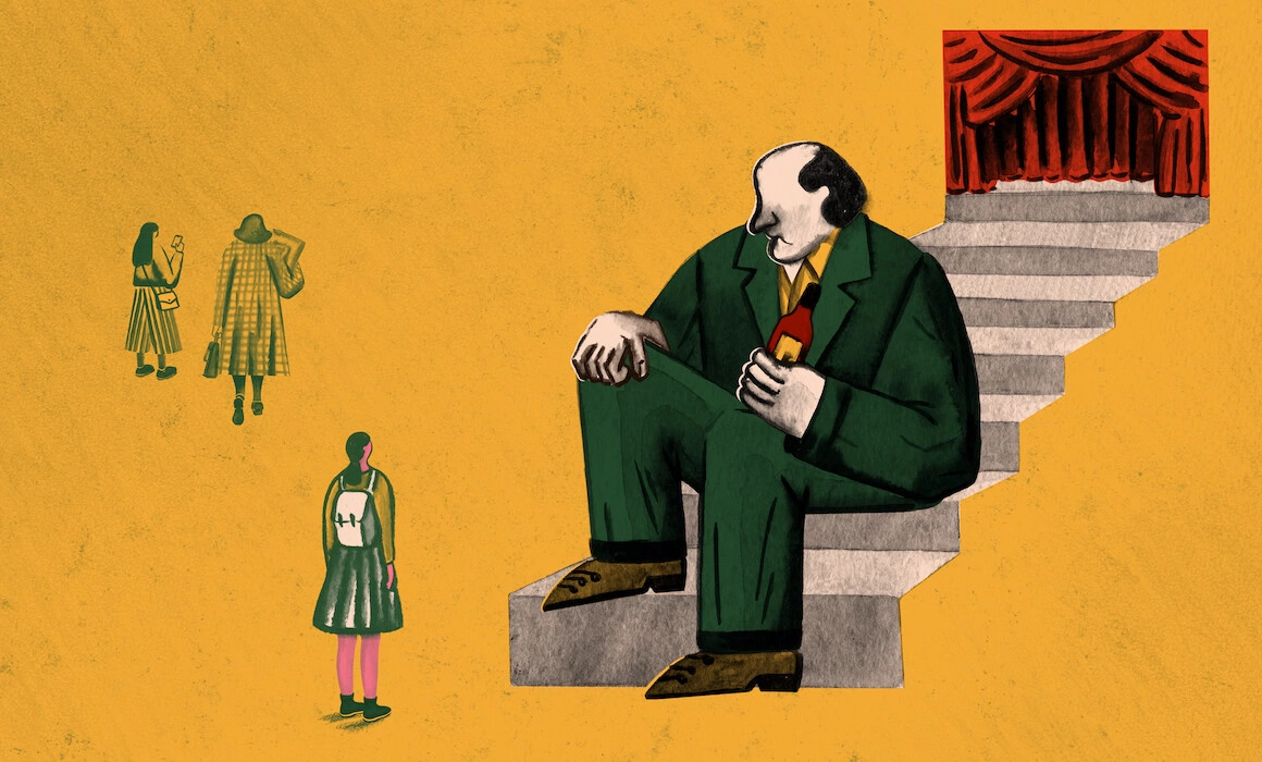E. vorbește deschis despre un învățământ toxic. „Într-un an de cursuri, tot ce am făcut a fost să vorbim de piese canonice, vestice, din anii ‘80-’90, chipurile contemporane, și să scriem despre ele. Tot ce îmi amintesc a fost că după ce am scris nu știu ce eseu, profesorul mi-a spus că am scris frumos, dar cam stângist (scrisesem probabil vreo idee radicală precum dreptul la locuință pentru toată lumea) și să am mare grijă cu părerile astea ale mele, că teatrul nu e politic. În rest, nu venea la cursuri, venea o dată sau de două ori la vizionări și când venea, nu asculta decât părerile a 2-3 colegi, că pe fruntea celorlalți lipise deja eticheta de ne-genial și nu se obosise nici să le rețină numele. Îmi promitea mie că o să-mi montez la teatrul lui licența și că o să ajung mare geniu ca el, dacă termin cu stângelile și mă pun pe artă.” O altă hibă a învățământului artistic pe care o identifică E. este cultivarea fracturii dintre actanții aceluiași domeniu. „Din când în când, în timpul cursurilor, mai lătra câte un câine pe stradă și se auzea în clasă. Atunci venea gluma recurentă cum că latră cățelele de la teatrologie. Noi toți râdeam ușor-ușor pentru că în clasă era o atmosferă de frică totală față de domnul profesor.”