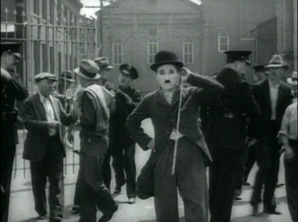 Vizita începe în hol, unde curatoarea a amplasat instalația Muncitori părăsind uzina în 11 decenii, realizată în 2006: 12 ecrane pe care rulează imagini cu oameni care ies de la uzină. Fragmentele sunt extrase din filme care acoperă fiecare deceniu, de la începuturile cinematografiei (cu La sortie des usines Lumière al fraților Lumière), până la sfârșitul mileniului doi (cu Dancer in the Dark al lui Lars von Trier). Primele referințe cinematografice prezintă imagini colective ale angajaților, în care individualitatea se pierde în fața uniformității produse de munca industrială. Fabrica pare mai degrabă o fermă, observă Farocki. Treptat, narațiunea se pliază pe individualismul tot mai accentuat pe care societățile occidentale îl cunosc în a doua parte a secolului 20. De la grupurile de muncitori și muncitoare, imaginea se concentrează treptat pe persoane, pe rolul indivizilor în organizarea colectivă sau în alte povești cotidiene din fabrică. În ultima parte a secolului, munca industrială e tot mai deconectată de muncitori. Omul este înlocuit de tehnologie, iar la final mai vedem doar o poartă automată, care deschide și se închide fără nici o legătură cu cel care o comandă sau o trece. Individul trebuie să se orienteze spre noile forme de muncă pe care neoliberalismul post-comunist i le propune.
