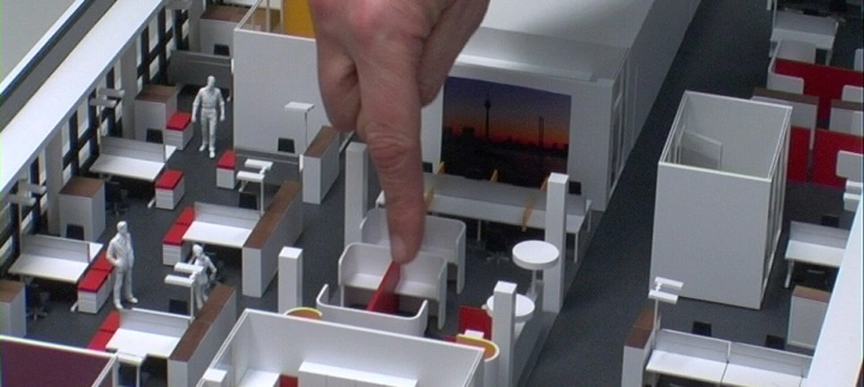 Imprevizibilul viitorului creează nevoia unui angajat flexibil, capabil să valseze între sarcinile, oamenii și locurile în care muncește. Flexibilitatea este încurajată, iar spațiul de lucru este regândit în acest sens. A New Product (Un nou produs) pornește de la proiectul de reorganizare a sediului unei corporații care-și propune să amestece ideea de timp și spațiu al muncii cu cel domestic, pentru a îmbunătăți productivitatea angajatului. „Trebuie ca angajații să găsească la locul de muncă o bucată din acasă”, spune unul dintre designeri. Biroul de lucru se transformă în spațiul de lucru, care comasează activități și pauze din care rezultă un timp continuu al muncii. Locurile dedicate sarcinilor specifice dispar pentru a crea open-space-uri, în care individul să îmbine munca, pauza și timpul liber. Scopul declarat ar fi, spune un alt personaj din film, să-l motiveze pe angajat să se concentreze pe sine, pentru a învăța și a se îmbunătăți de unul singur. Totul, însă, sub atenta monitorizare a firmei care urmărește ca îmbunătățirea să fie benefică eficienței și productivității. Pentru asta, altcineva propune ca evaluarea profesională să includă și atingerea unor obiective personale stabilite de angajat împreună cu firma. „Ți-ai îndeplinit sarcinile de familie? Ai reușit tot ce ți-ai propus din punct de vedere personal?” În caz contrar, este propusă reevaluarea. Succesul în îndeplinirea obiectivelor s-ar traduce prin noi beneficii. La rândul lor flexibile, ele nu se mai bazează doar pe capitalul financiar, ci includ program de muncă redus și alte pachete motivaționale care să favorizeze dezvoltarea angajatului.