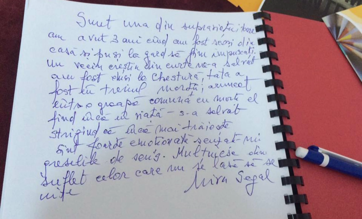 În cartea de onoare a unei expoziții documentare organizate cu ocazia comemorării Pogromului de la Iași, cineva a scris așa: