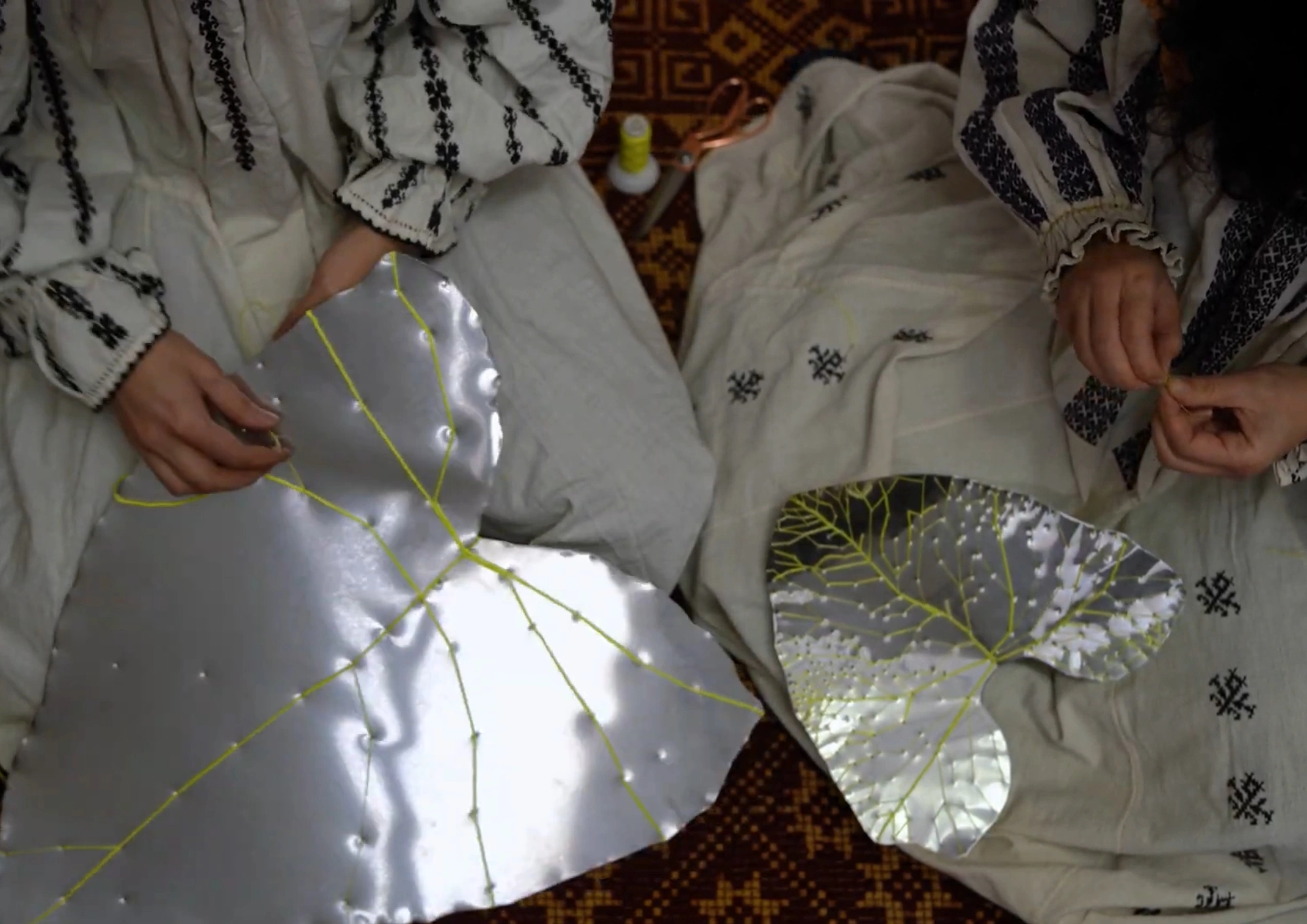 Plantele, frunzele, mărăcinii sunt realizate cu migală prin tehnici manuale tradiționale ce oferă formă efemerului. Cusătura este, pentru artistă, un limbaj și un act de continuitate culturală, o punte între ce a fost și ce (mai) poate fi. Lucrările artistei ridică anumite întrebări fundamentale: ce păstrăm și ce lăsăm în urmă, cum ne amintim, despre felul cum tăcerea prinde formă acolo unde altădată era glas, gest, prezență.