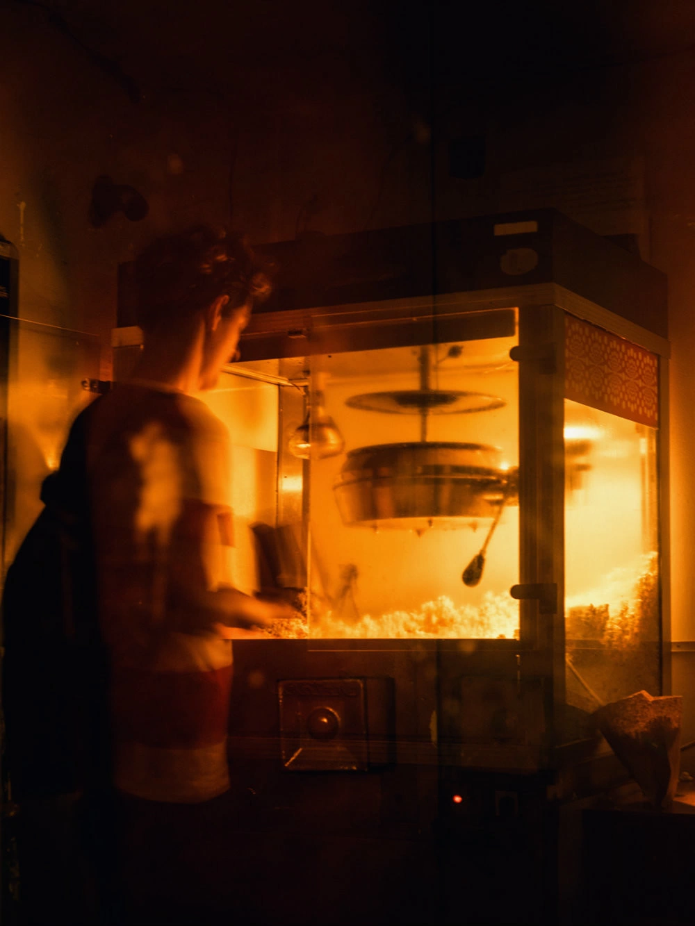 Cafeneaua există datorită tânărului de la bilete, Samuel Șmalberger. „Din banii mei, o parte munciți, o parte de la fratele meu, am investit aici aproape 130 de milioane [de lei vechi, n.r.] pentru cafenea. Am zugrăvit, am dat cu vopsea d-asta scumpă pe pereți, să reziste. Am pus sistemul de muzică, tablourile, am ornamentat totul ca să fie atractiv locul ăsta”, explică el, în timp ce filmul curge dincolo de cortină. Samuel e masterand la Facultatea de Drept din București și e pasionat de psihologia judiciară. La cinemaul din Cotroceni a ajuns acum trei ani, când își căuta un job cu jumătate de normă, ca să nu depindă de părinți în facultate. Spera că își va sărbători ziua de 25 de ani la cinematograf, cu cei apropiați.