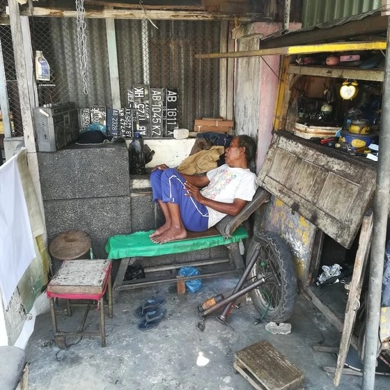 Are aceeași semnificație, se pronunță la fel, doar că în Indonezia pur și simplu nu există; sau dacă există, e mai mult o glumă. Acolo unde există trotuar, acesta e ocupat de vânzători ambulanți, mici ateliere de reparat motoscutere, vulcanizare, mâncare și chiar frizerii, vaze uriașe cu plante printre care trebuie să te strecori, corturi cu bucătării ambulante, treci direct prin spatele bucătăriei, toată lumea zâmbește, chiar și clienții care mănâncă te salută cu o mișcare ușoară a capului. Mă întrebam la un moment dat ce-i atât de uimitor să mergi pe jos? În Indonezia e. Aici aproape nimeni nu merge pe jos, toți sunt pe motoscutere. Oricum, ei sunt foarte distrați când văd albi mergând pe jos. Ei sunt numai zâmbet și înțelegere, europenii mai încruntați, așa, și transpirați, nu prea le înțeleg umorul, cred că nici nu sunt curioși să-l înțeleagă.