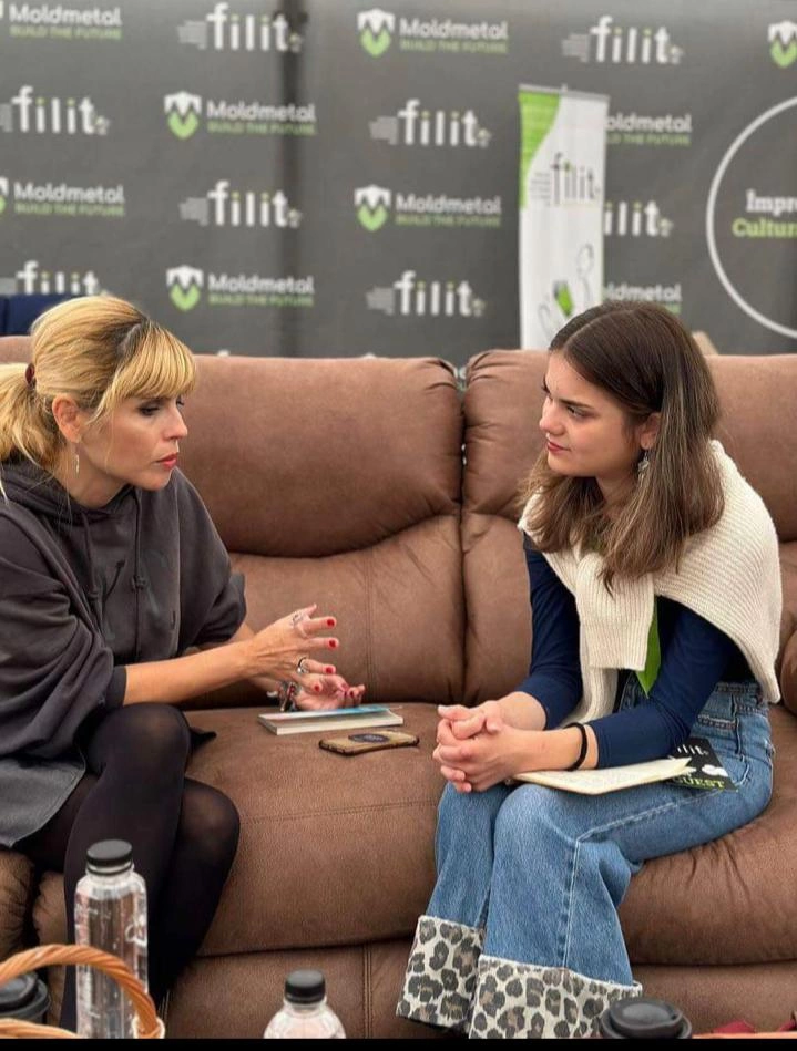 Am povestit cu ea la Festivalul Internațional de Literatură și Traducere din Iași (FILIT), care a avut loc luna aceasta. Când ne-am întâlnit, Alina purta inele colorate și sclipici pe pleoape, iar când vorbea, mă privea direct în ochi. A vorbit încet și m-a rugat să am răbdare cu ea, pentru că în sală era gălăgie. A folosit în special genul feminin, nuanță pe care mi-am dorit să o păstrez în text, nu ca o excludere a genului masculin, ci ca o accentuare și afirmare a vocii feministe.