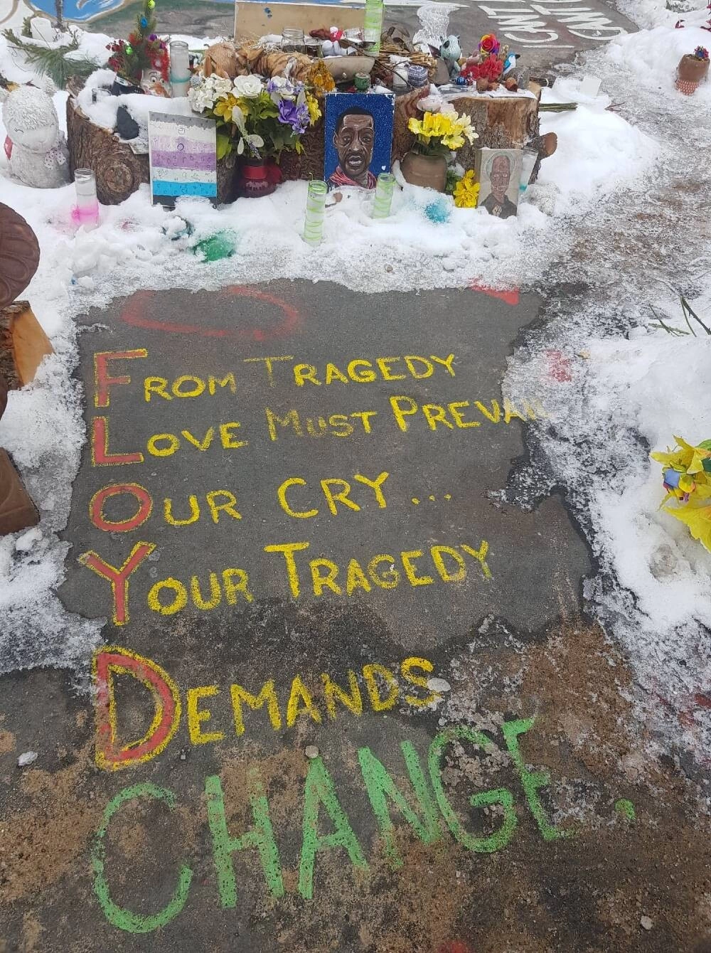Acum este închisă strada și este transformat totul într-un memorial. Am fost de două ori. Este un loc de meditație, dar și de dezbatere. O să vezi mereu persoane cu microfonul care își spun punctul de vedere. Este o mică agora, își spun punctul de vedere despre cum ar trebui să le fie respectate drepturile persoanelor din Black community și ce face și ce nu face statul. Am fost acum trei săptămâni, când se apropia începerea procesului și oamenii cereau solidaritate și dreptate. Dar stând puțin acolo, am văzut că de fapt nu era vorba doar despre George Floyd. Anual, în Minneapolis, Minnesota foarte multe persoane sunt omorâte de către forțele de ordine. Nu doar din comunitatea persoanelor Black, dar și persoane cu probleme de sănătate mintală. Am observat că se pleacă cu prejudecata că persoanele din comunitate sunt mai predispuse la a face acte criminale. Studiile pe care le-am citit arată că poliția are tendința să acționeze mai violent și să ajungă mai repede dacă este mai implicată în calitate de suspect o persoană de culoare.
