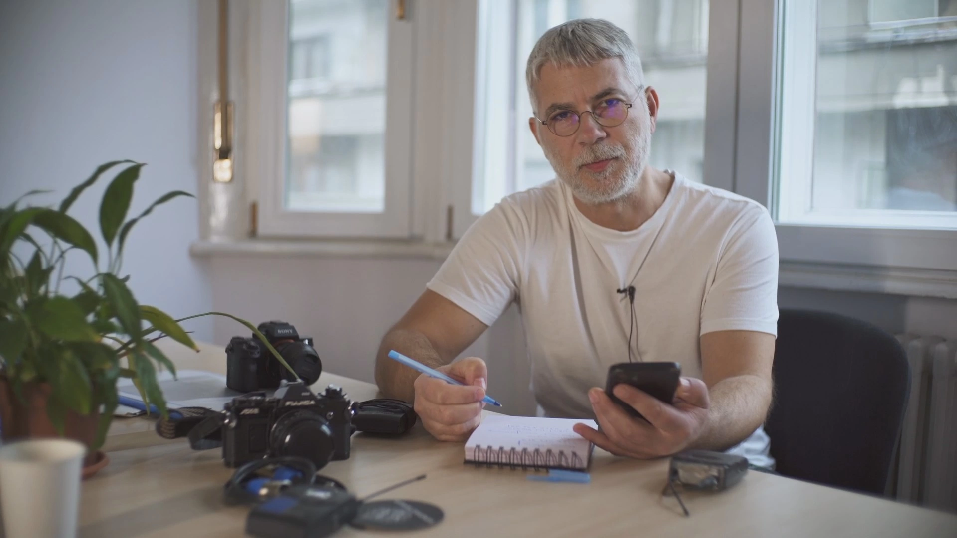 Cea mai importantă decizie pe care am avut-o de luat a fost cât ne ducem spre reportaj tip YouTube, cât spre estetica de cinema. Prima variantă ne ajuta foarte mult din punct de vedere buget, e adevărat, dar ne și ținea foarte aproape de o poveste cât mai verosimilă și credibilă. Am vorbit mult dacă să tragem scene cu viața de dincolo de ecran a lui Vânătoru, acasă, cu familia, arătând sacrificiile pe care trebuie să le facă pentru meseria lui. La fel cu Eremia, puteam face flashback-uri, puteam insera footage din trecutul lui. Dar am zis să tragem interviurile care spun povestea, să vedem ce ne iese și, dacă simțim că nu se leagă convingător, să facem cumva să le punem și pe celelalte. Am tras multe secvențe, am și tăiat destule, pentru că deveneau obositoare la un moment dat discuțiile, și ne-am dat seama că funcționează foarte bine ca un reportaj, fără inserții mai cinematice de flashback.