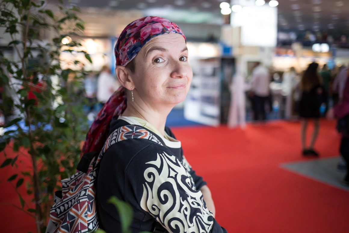Am stat de vorbă cu Ioana Bradea la Romexpo, câmpul ăla de bâlci asfaltat din nordul Bucureștiului. Pe fundal, micii și berea se topeau în oamenii din jur, la o terasă cu umbrele. Pentru portofelul vizitatorilor concurau un târg de nunți, unul pentru seniori, târgul de carte și, desigur, nelipsitul târg de brânze, mezeluri și plăcinte făcute 75% din unt și miere. Pentru o întâlnire cu o scriitoare care se uită cu firească și egală curiozitate la tot ce-i omenesc, adică disonant, contradictoriu, strâmb și „de rușine”, a fost decorul perfect.