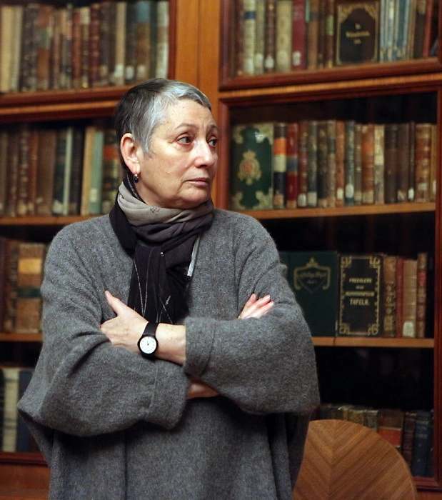 Ludmila Ulițkaia are un pic peste 1,50m, mâini mici și frumoase, părul scurt, cărunt, și o voce demnă de fumătoarea înrăită care continuă să fie, la 76 de ani. E o după-amiază călduroasă de mai, dar e răcoare între cărțile Librăriei Humanitas de la Cișmigiu, unde ne întâlnim ca să stăm de vorbă despre romanul său, Scara lui Iakov, lansat recent la Editura Humantias Fiction. E îmbrăcată în alb și gri, cu un kimono ușor pe umeri, cu imprimeu de siluete de maimuțe voios-dansatoare. Stăm de vorbă la o cafea, despre tot, de la Putin la Facebook la literatură.