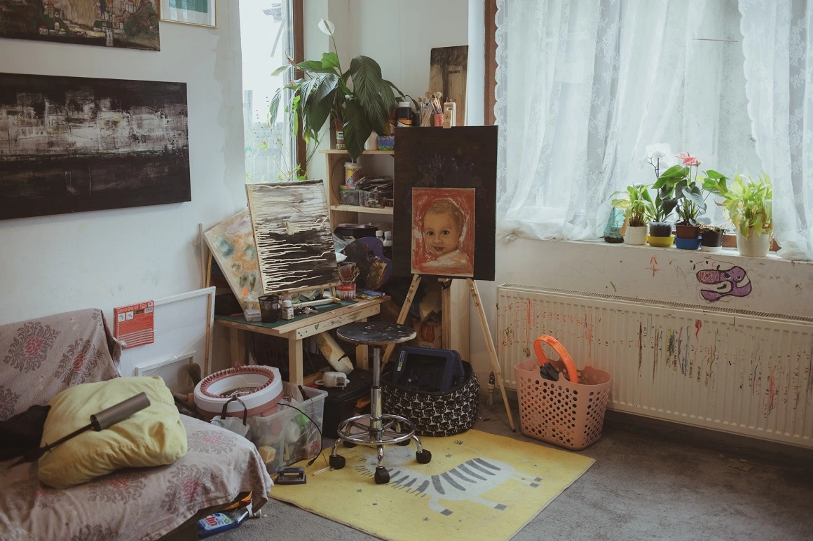 Este foarte greu să îți împarți viața de atelier cu cea de mamă, mai ales în primii ani de viață. De exemplu, în 2013, când am născut primul copil, lucram la două școli ca profesor de arte, pentru că nu am putut să-mi iau concediu de maternitate din cauza birocrației de atunci și a lipsei personalului didactic. Am fost nevoită sa merg cu bebelușul timp de un an la școală ca să predau, a fost foarte greu.