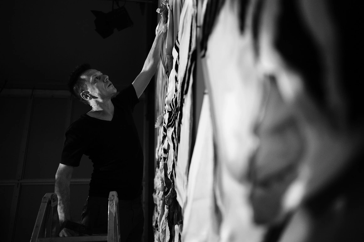 Plecând de la asta, după aceea, vedem pe parcurs cum devine acest tot posibil. Ideea de la care a pornit „Deeparture”, lucrarea cu lupul și căprioara, a venit efectiv out of the blue, am zis: vreau să fac asta. M-a interesat această idee de tensiune și cum voiam să materializez o imagine în mișcare, în film. În fotografie, bineînțeles, poți să pui în cadru animale împăiate și să falsifici acea tensiune, dar le-am zis ce vreau și, îți dai seama, reacția a fost de surprindere. De unde facem rost de așa ceva? Ok, găsim o soluție, dar cum să stea împreună? Și așa mai departe.