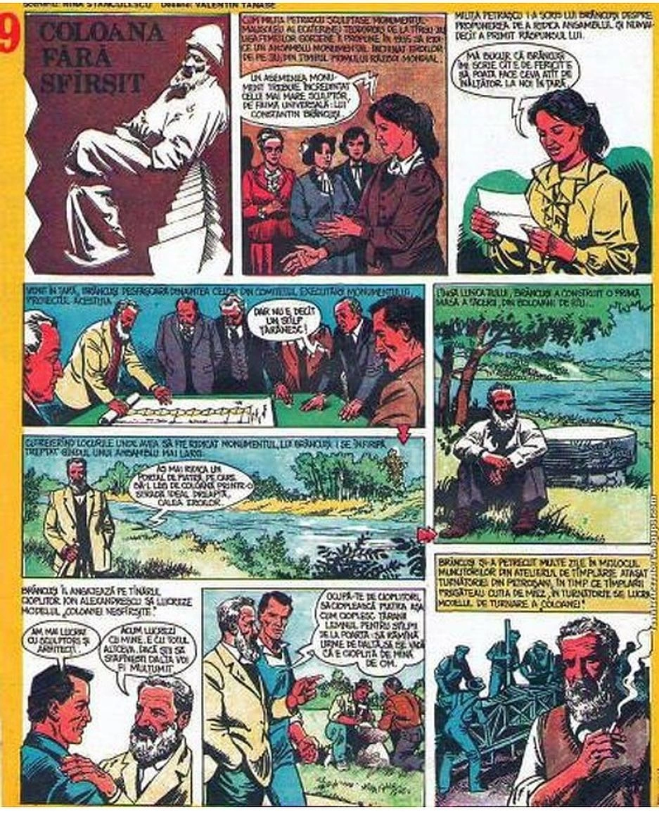 Primele timbre în care apare Coloana Infinitului datează din 1966, deci exact după ce vine Ceaușeșcu la putere. Până în ‘60 și ceva, Brâncuși a fost persona non grata în mediile academice, nu se vorbea de el, era burghezul vândut Occidentului, artist degenerat. I s-a refuzat, cum bine știi, moștenirea (el își oferise atelierul cu tot ce avea în el României), ceea ce-i foarte bine, căci nu l-aș mai fi văzut. Am recuperat toate timbrele care au fost scoase în ’67, la 10 ani de la moartea lui Brâncuși, sunt acele serii cu rugăciunea, cu Poarta Sărutului, mai toate operele lui din România, asta era ideea.