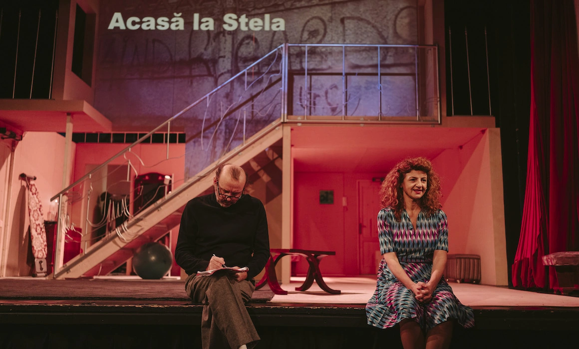 La scenele din casa Stelei se renunță explicit în spectacol din cauza absenței „actorului” care să-l joace pe Mircea, prin urmare apartamentul ei nu este reprezentat vizual. Când aceste scene devin imperios necesare în structura spectacolului (cadrul este cel al unei repetiții generale a spectacolului pe care tocmai îl vedem) și „recuziterul” ia locul „actorului” (în paradigma „actorul joacă recuziterul care joacă actorul care joacă recuziterul”), ele se derulează în afara decorului. Se marchează astfel faptul că Stela nu are o casă în care să se simtă „acasă”, locuința ei nu se aliniază standardului imobiliar și ea este la marginea clasei de mijloc și la baza ierarhiei sociale. Iar acest ultim aspect se reflectă puternic în relațiile pe care le stabilește cu angajatorii săi.