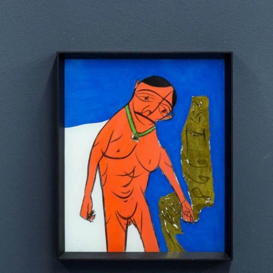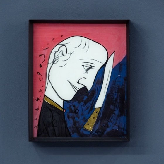 Poți rezuma rapid una dintre imaginile cele mai importante – un om privește cu fruntea senină lama enormă a unui cuțit. Undeva între cuțit și om, o inscripție – vulnerant omnes. Dacă o pui în Google pe smartphone, traducerea apare în engleză - every hour wounds, the last one kills. Și totuși nu e nimic trist în imaginile astea în alb, roșu și albastru, date uneori cu auriu. În plus, pictorul are și umor, pentru că în altă imagine se prezintă pe sine în pielea goală, cu o medalie la gât. Pare să zică – unii mă consideră privilegiat pentru profesia mea, dar eu mă simt mereu ca și cum aș fi în fundul gol.
