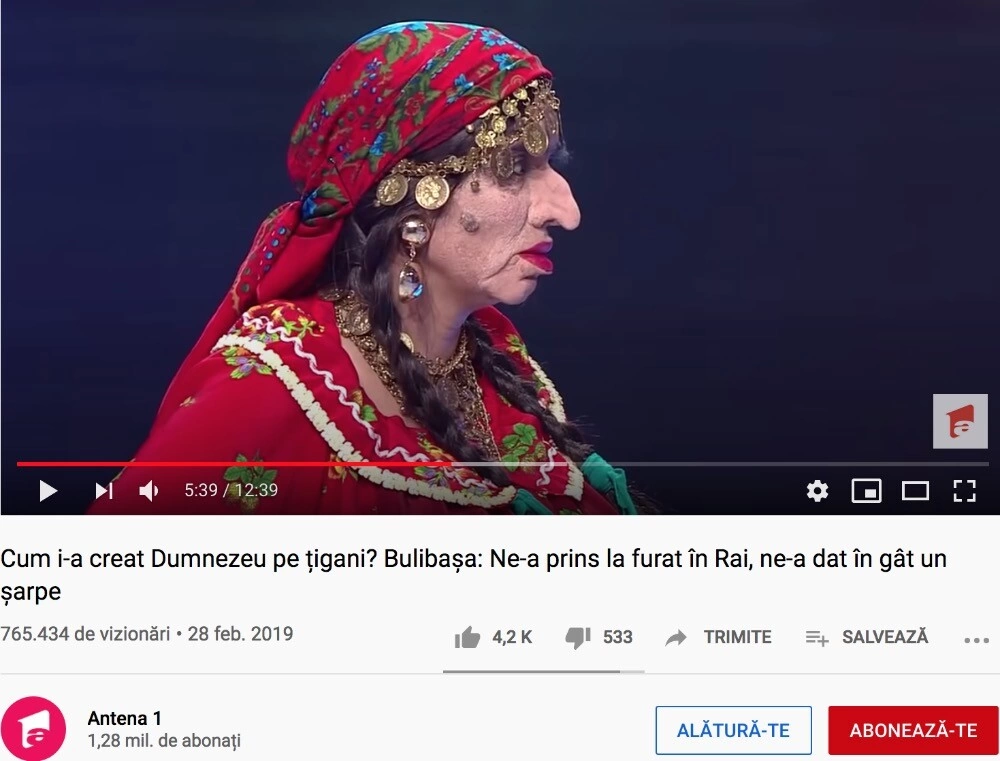 Un lucru semnificativ e că aceste scenete sunt scrise și interpretate de români. În ele, se râde pe seama unor romi caricaturali, aduși de multe ori în zona grotescului, din perspectiva majoritarilor. E ca și cum ar trebui să te obișnuiești cu ideea că ești doar personajul secundar în povestea altcuiva.