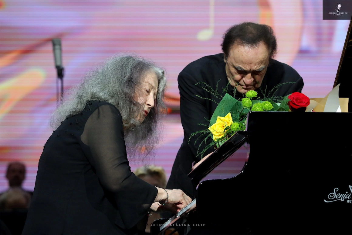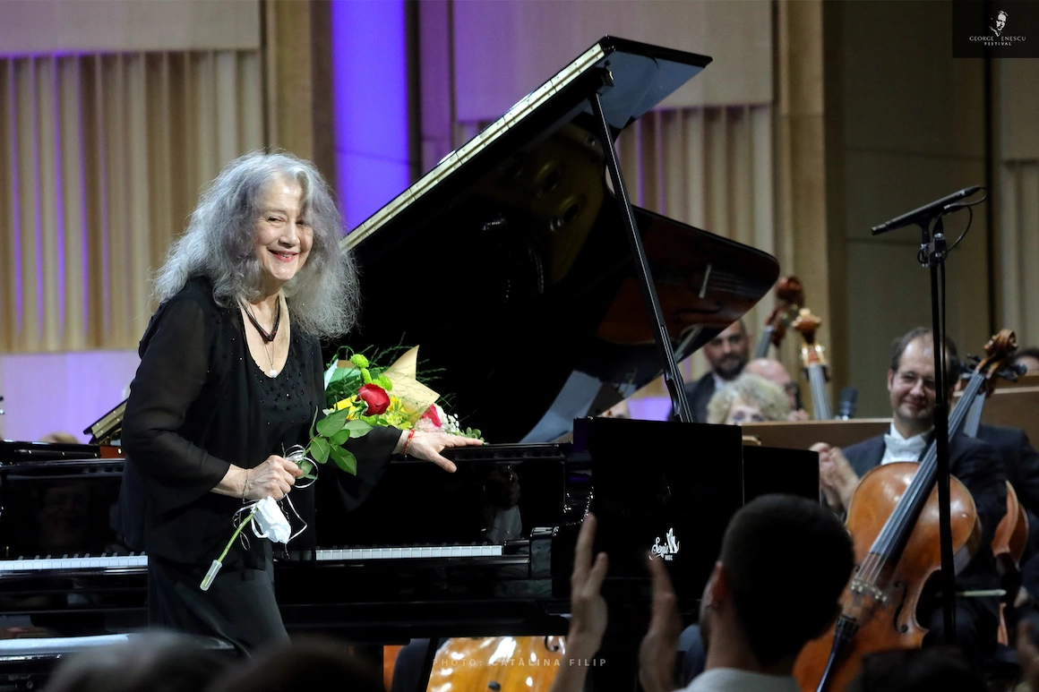 (18 septembrie 2023) La Sala Palatului, după șase ani de la ultima apariție bucureșteană – atunci când am ascultat-o, în același loc, cu Concertul în sol major pentru pian și orchestră de Maurice Ravel – și după multe zvonuri de neprezentare, o primim pe Martha Argerich cu sala înțesată de oameni, cu entuziasmul și regretul unei posibile ultime întâlniri. Spațiul se umple de cei nerăbdători, de cei ce-și caută un locșor care să le asigure un minim de confort pentru următoarea oră, chit că este vorba despre o bucată de scară sau de un scaun la balcon, în cel mai îndepărtat punct al încăperii. Cu greu înaintând pe scenă, o avem, în sfârșit, în fața noastră, nu doar pe o pianistă-minune, ci mai ales pe o femeie interesantă, capricioasă, cameleonică – „o ființă supranaturală, o zeiță”, după cum avea să o numească fata ei cea mică.