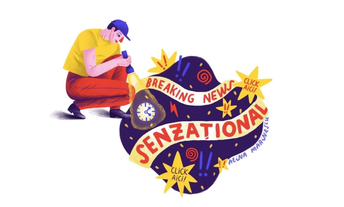 Ilustrație de Alina Marinescu pentru textul Ora de fake news