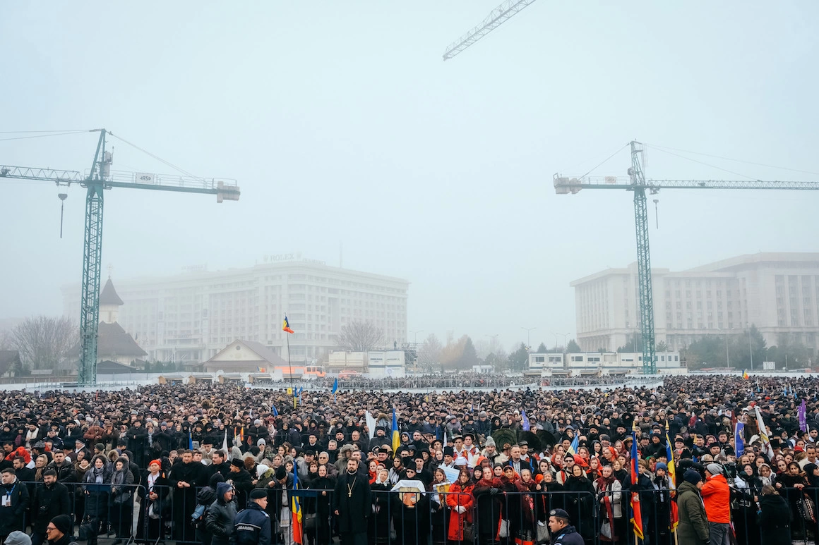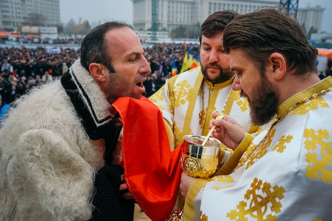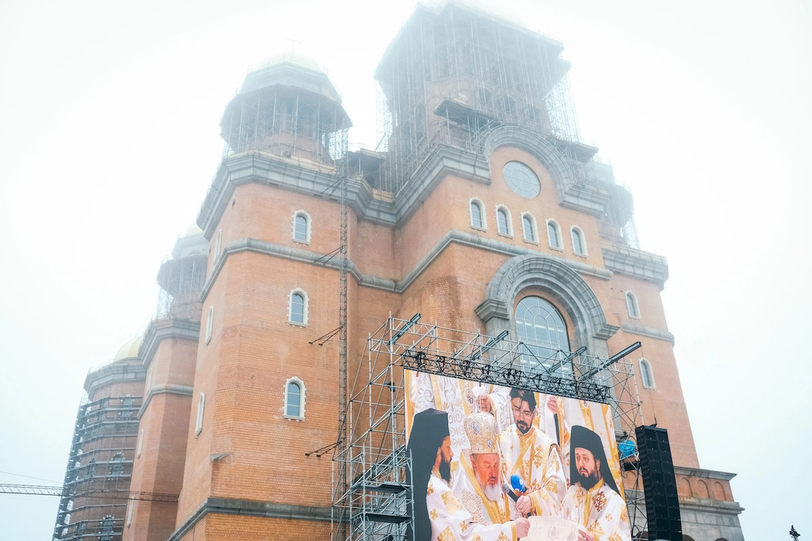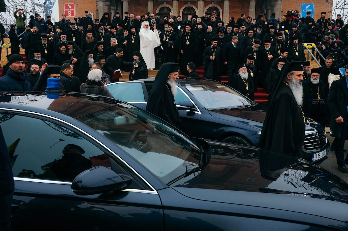 Românii și-au luat ieri în primire Catedrala „la roșu”, după ce-au plătit zeci de milioane de euro pe ea. Bine, e un fel de-a spune că și-au luat-o în primire, pentru că majoritatea - cei fără relații la Patriarhie - au urmărit slujba de sfințire a altarului pe niște ecrane, în frig, dincolo de gărdulețele și brațele jandarmilor. Andrei Pungovschi a prins în 17 imagini o zi cețoasă din istoria României centenare.