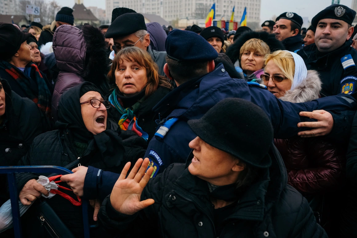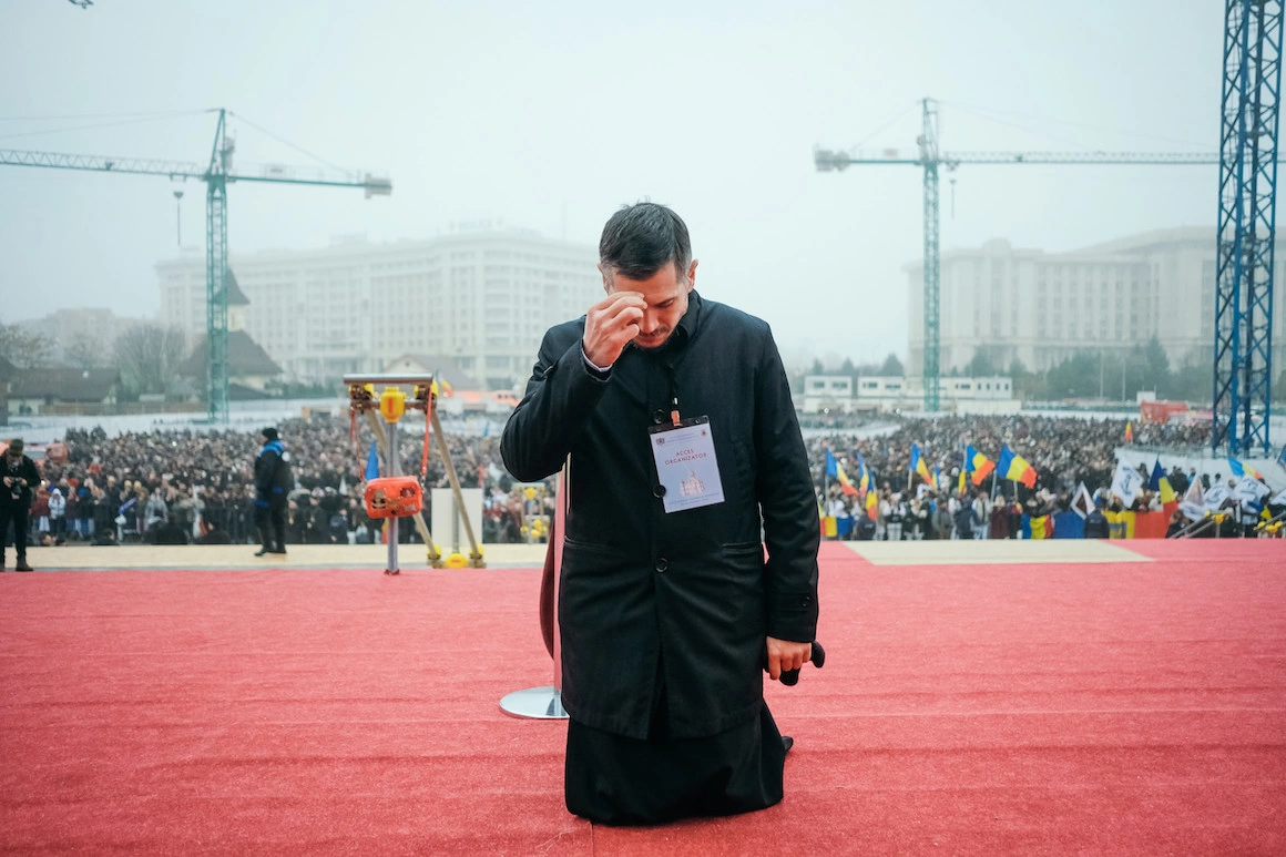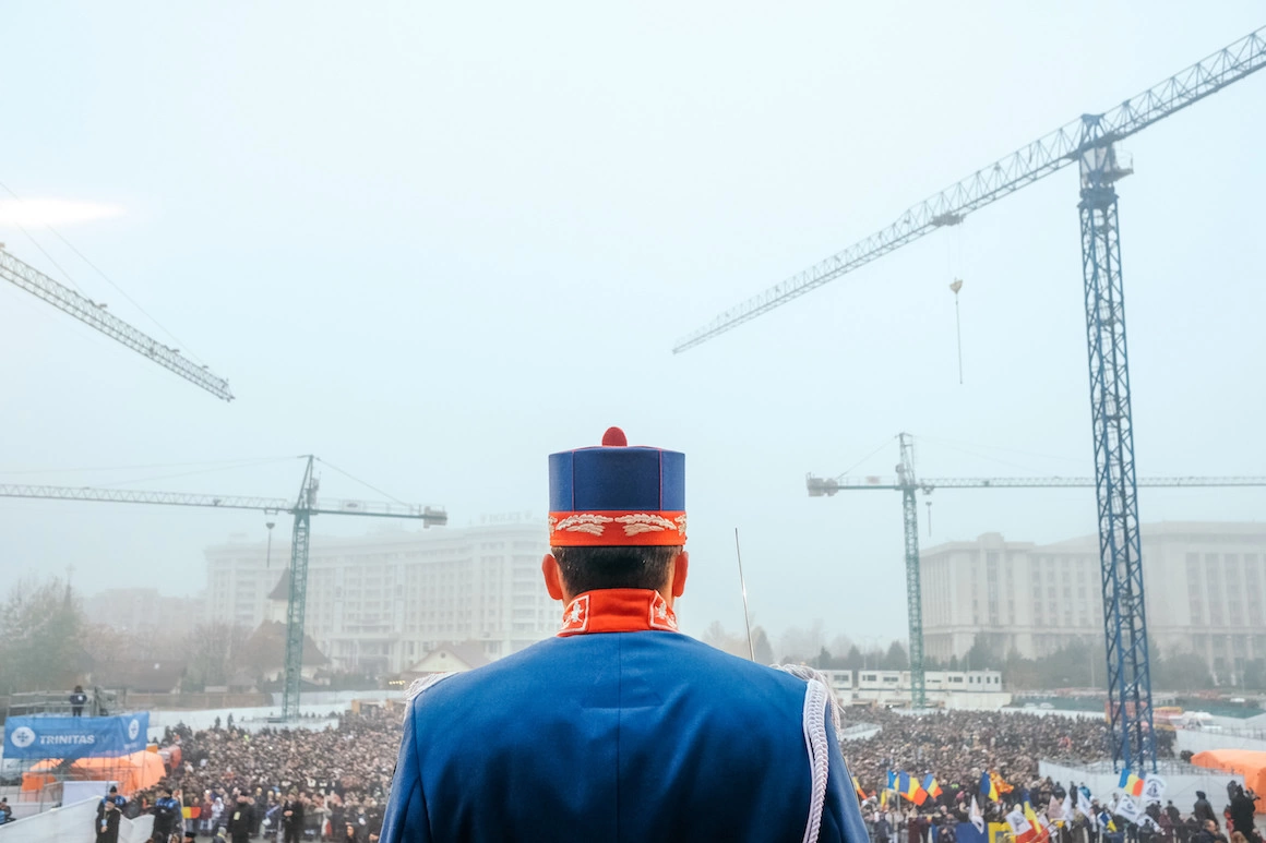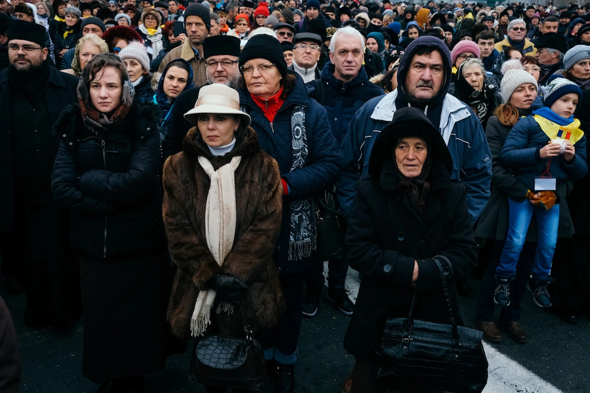 Românii și-au luat ieri în primire Catedrala „la roșu”, după ce-au plătit zeci de milioane de euro pe ea. Bine, e un fel de-a spune că și-au luat-o în primire, pentru că majoritatea - cei fără relații la Patriarhie - au urmărit slujba de sfințire a altarului pe niște ecrane, în frig, dincolo de gărdulețele și brațele jandarmilor. Andrei Pungovschi a prins în 17 imagini o zi cețoasă din istoria României centenare.