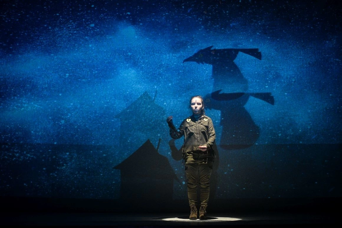 „E un spectacol despre lumea a doi copii cu deficiențe de auz”, îmi zice actrița Nicoleta Lefter. „Am pornit de la visele lor, de la ce pasăre sau ce animal ar visa. Și așa am ajuns la o cioară albastră.”